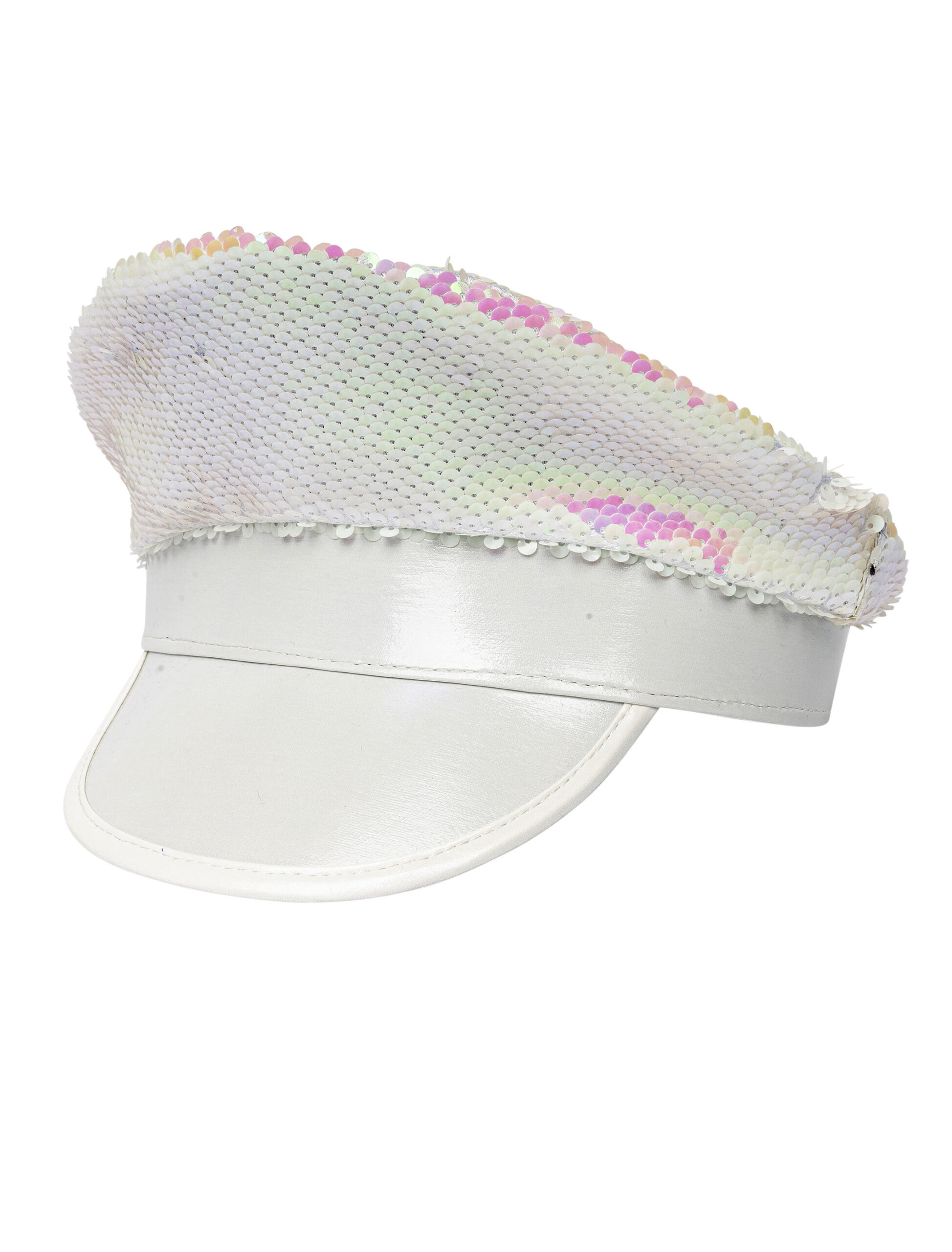 Schicke Kopfbedeckung, die zu einer Vielzahl von Kostümen und Verkleidungen passt! Die weiße Kappe mit den vielen Wendepailletten macht besonders dort, wo ausreichend Licht vorhanden ist, jedes Kostüm zu einem extravaganten Hingucker. Denn dann schillern die Pailletten um die Wette und lassen Dich erstrahlen. Ein Must-Have für alle, die auf ganz besondere Accessoires stehen!