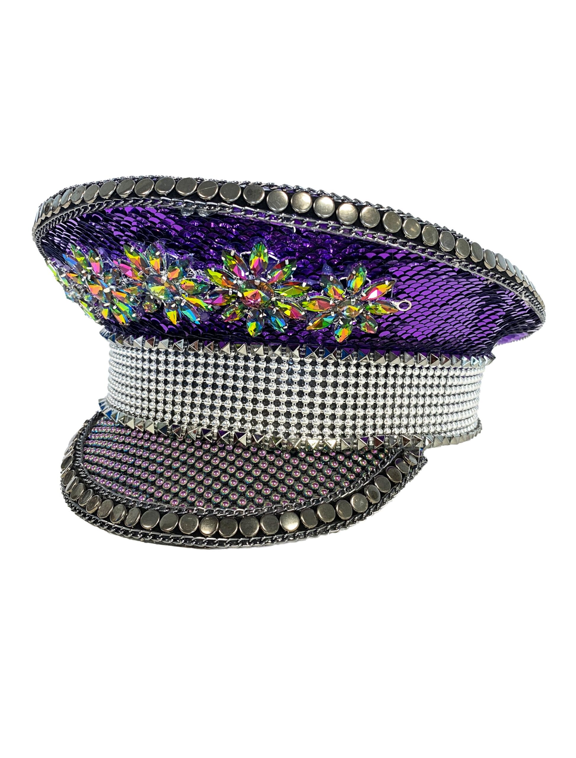 Strahlende lilafarbene Pailletten, silberne Nieten und farbenfrohe, glitzernde Schmucksteine in der Optik von Kristall-Blumen prägen den auffälligen Kopfschmuck, der mit einer Kombination aus einzigartigem Design, angenehmer Passform und Strapazierfähigkeit punktet. Mit der außergewöhnlichen Kappe wirst Du unmittelbar zum visuellen Blickfang auf Festivals oder im Karneval bzw. im Fasching. Die Front der Kopfbedeckung zieren 5 leuchtende Schmucksteine in Blütenoptik, die in allen Farbspektren glänzen. Das Trend-Accessoire begünstigt einen extravaganten Auftritt, der aus der Masse hervorsticht.