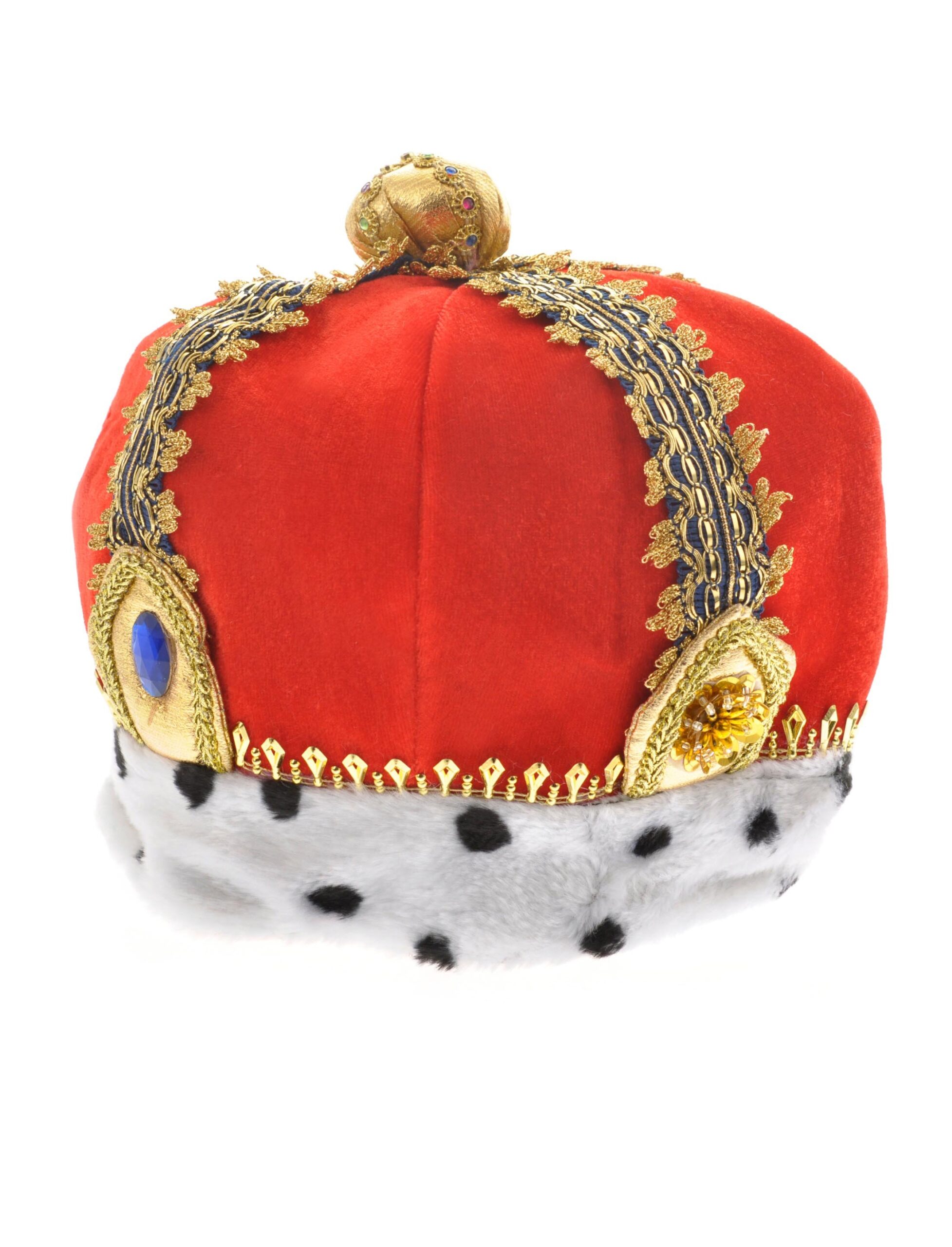 Majestätisch, königlich, prunkvoll – alles Begriffe, die dank dieser auffälligen Königskrone perfekt auf Dich zutreffen. Die Mütze besteht aus rotem Stoff und ist mit goldenen Borten, Applikationen und hübschen Steinen verziert. Abgerundet wird sie durch den weißen Stoff mit den schwarzen Punkten. Ein Hingucker auf jeder (Königs-) Party!