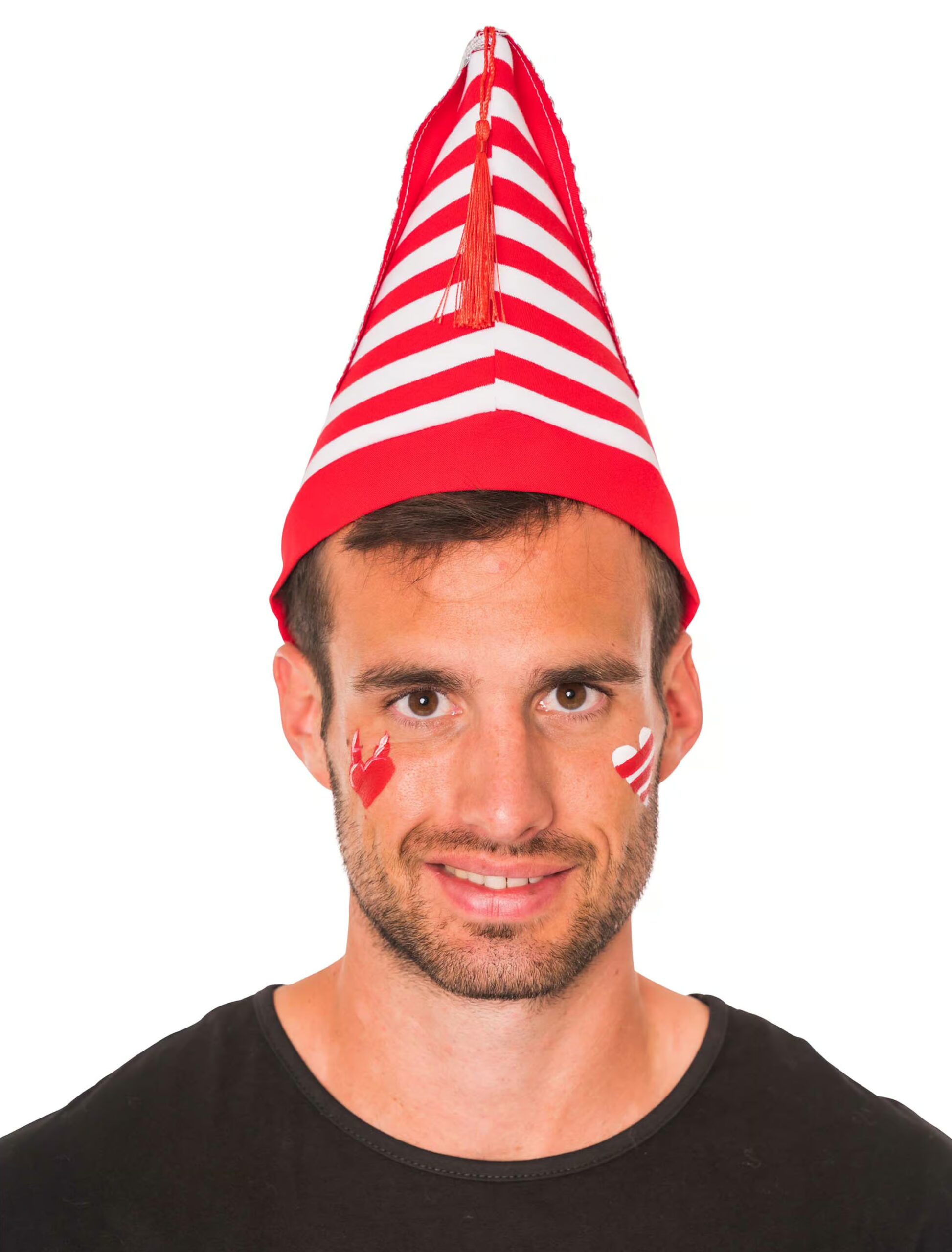 Mit dieser rot-weiß, gestreiften Komiteemütze bist Du nicht nur zum Fasching und Karneval gut behütet, sondern zeigst gleichzeitig, dass Du ein echter Kölner bist. Die einfache rot-weiße gestreifte Komiteemütze mit der silbernen Litze und der roten Quaste ist die perfekte Kopfbedeckung für Karnevals-Sitzungen und macht auch beim Straßenfasching oder auf dem Umzugswagen was her. Mit ihr bist Du immerund überall als kölscher Narr, der seine Stadt und den Karneval liebt zu erkennen.
