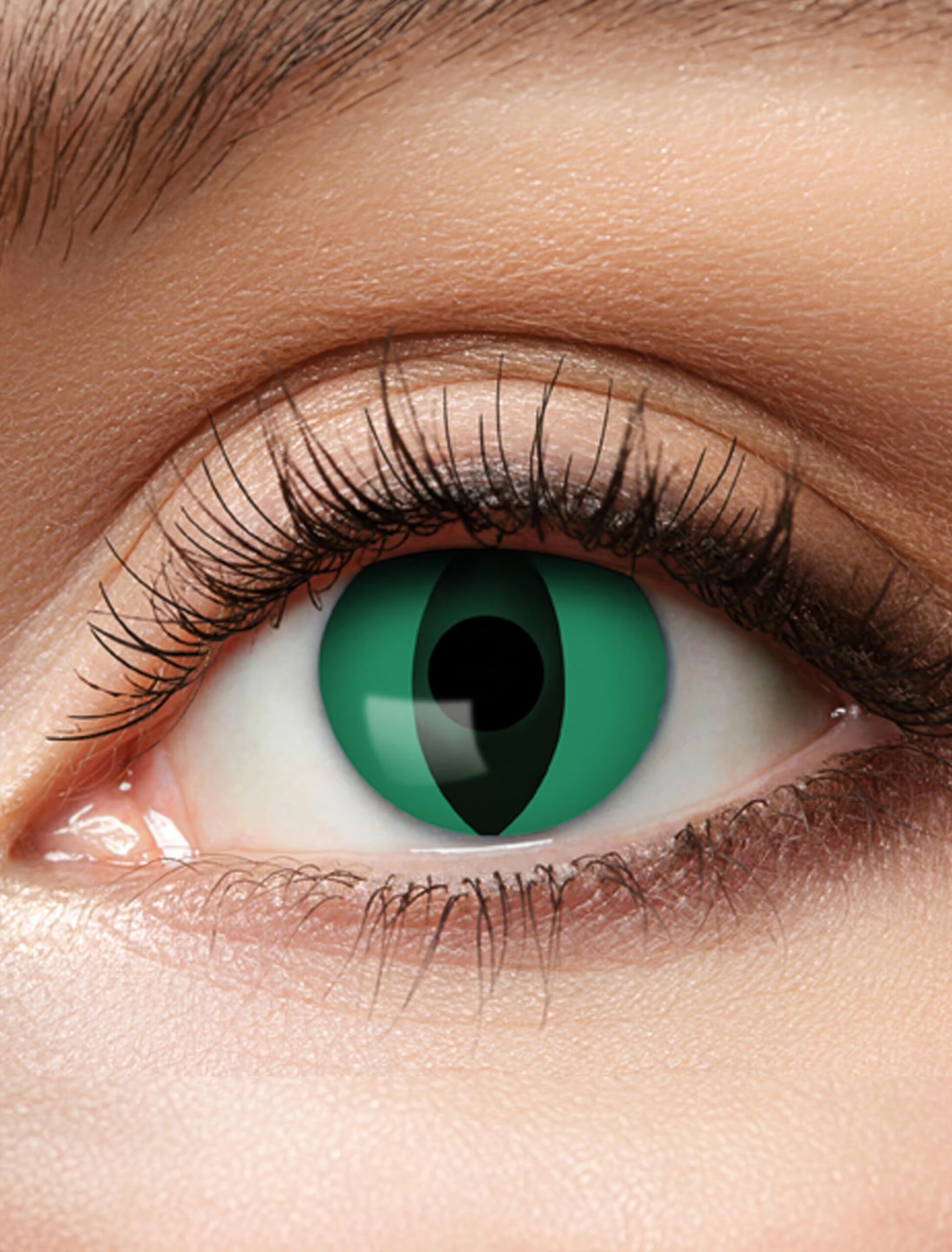 Schlangen sind Deine Lieblingstiere und Grün Deine Lieblingsfarbe? Dann sind die Kontaktlinsen Anaconda mit ziemlicher Sicherheit etwas für Dich. Zeige Deine giftige, verspielte Seite mit diesen Augen, die, so wird es behauptet, sogar echten Anakondas das Fürchten lehren. Die Kontaktlinsen Anaconda sind Dein perfekter Begleiter für Mottopartys jeder Art, denn niemand wird Deinen grünen Schlangenaugen widerstehen können. Du bist damit ein gern gesehener Gast, der gerne in den Mittelpunkt gestellt wird. Bist Du dieser Aufgabe gewachsen? Ein super Effekt für Dein Kostüm zu Karneval oder Halloween.