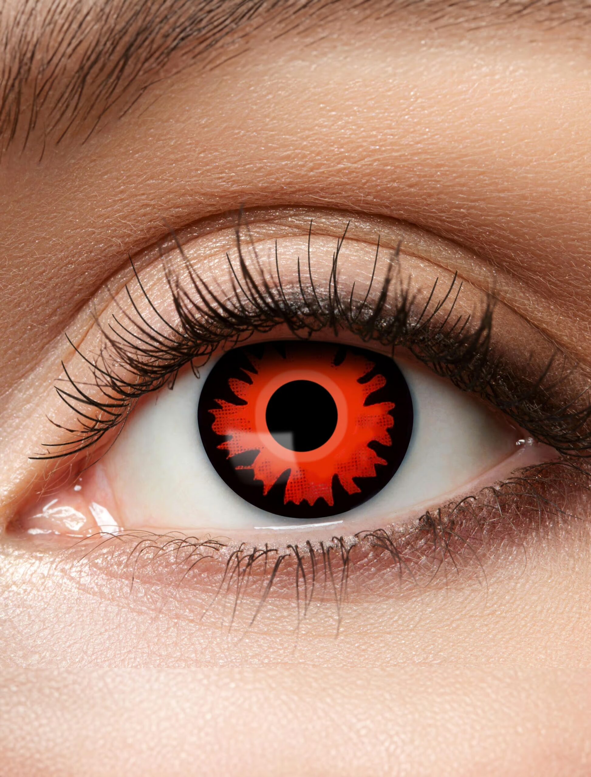 Schau mir in die Augen Kleines! Diese Augen haben eine wahrhaft wahnsinnige Wirkung. Die sehr hochwertigen Kontaktlinsen machen aus wirklich jedem Kostüm ein filmreifes Horror-Outfit. Deine echte Augenfarbe wird von einem wilden Rot-Schwarz bedeckt. Genau das Richtige, um als Wahnsinniger an Halloween für Angst und Schrecken zu sorgen – aber auch an Karneval nicht verkehrt!