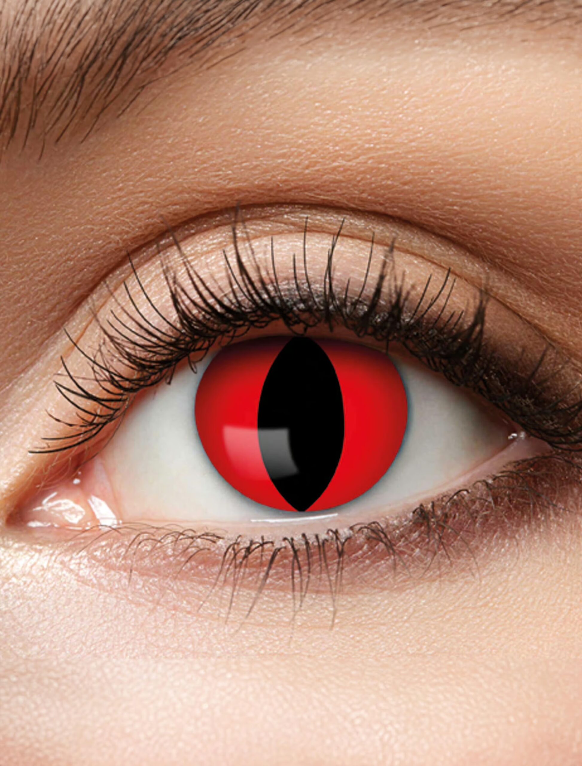 Rote Augen sind Dir nicht außergewöhnlich genug? Wie wäre es dann mit den Kontaktlinsen Red Cat für Dich, die Dir sowohl einen Furcht einflößenden als auch katzenartigen Blick verschaffen. Die Überraschung in den Augen Deiner Mitmenschen ist Dir damit so gut wie sicher. Wie wirst Du im Überraschungsmoment reagieren? Mit einem dezenten Fauchen oder wirst Du eher verspielt rüberkommen? Es liegt ganz bei Dir. Kurzum erlauben es Dir die Kontaktlinsen Red Cat, die Welt aus einem anderen Blickwinkel zu sehen. Ein super Effekt für Dein Kostüm zu Karneval oder Halloween.