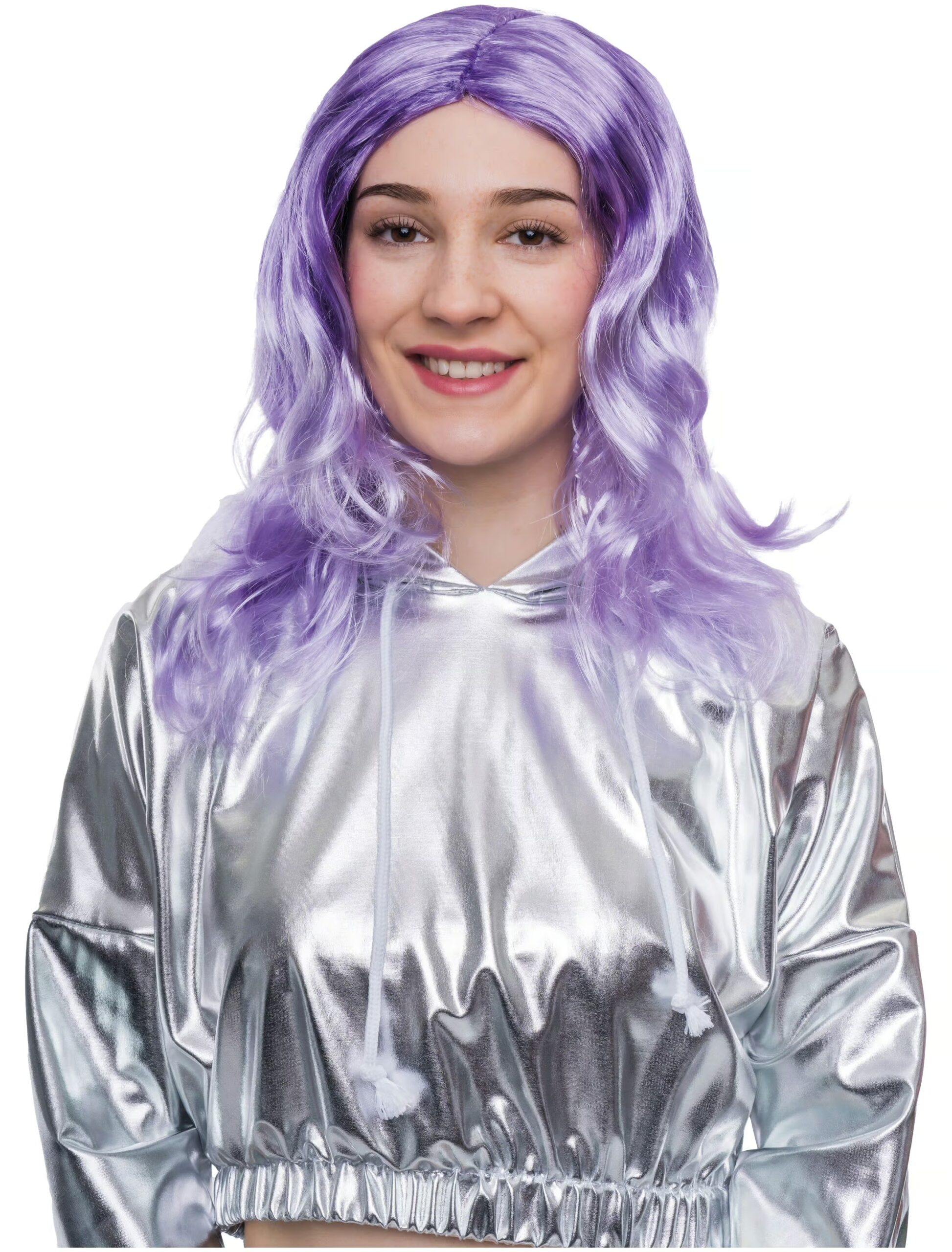 Kostümzubehör Kostümzubehör Perücke Galaxy mittellang wellig lila