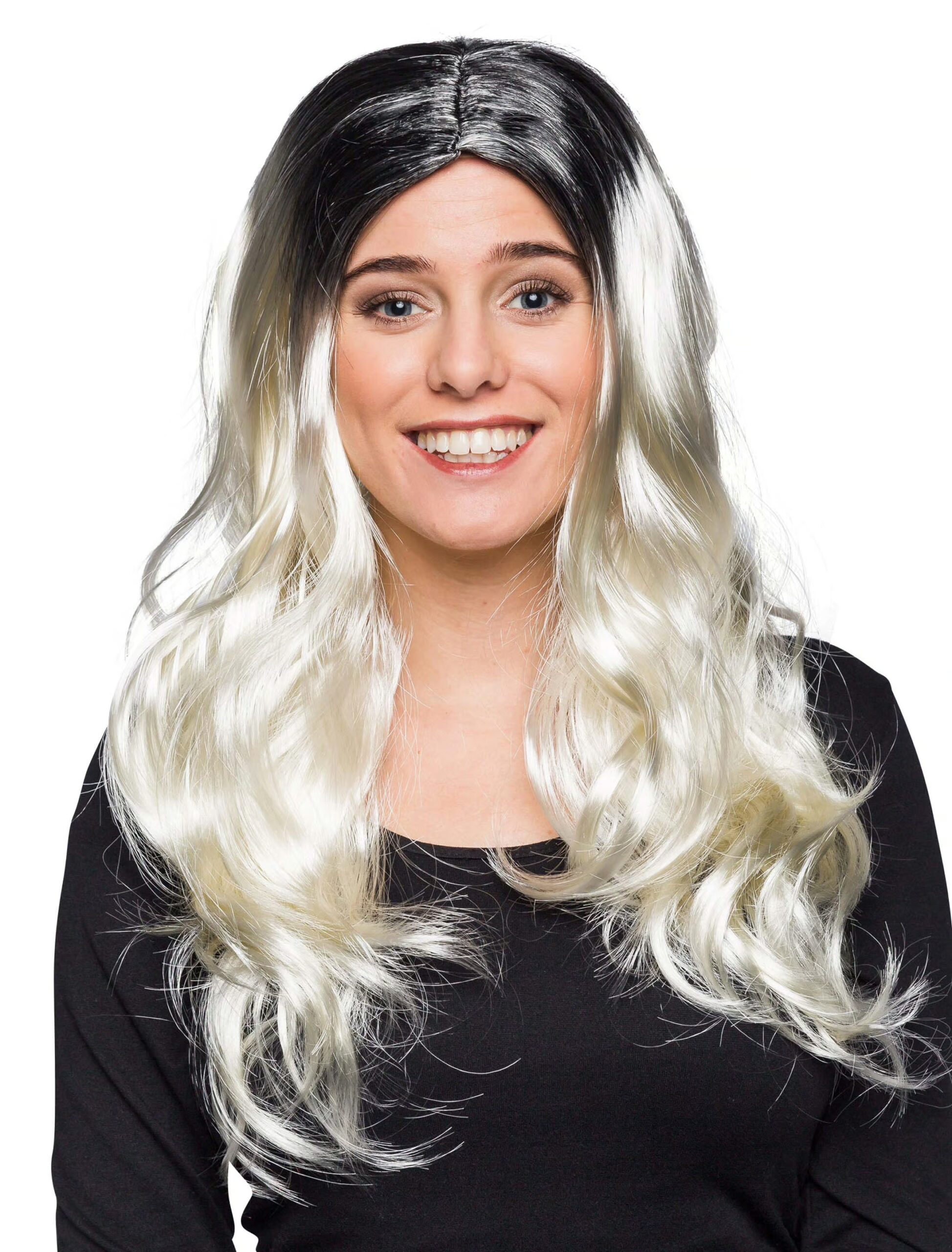 Kostümzubehör Kostümzubehör Perücke lang wellig dunkler Ansatz schwarz/weiß