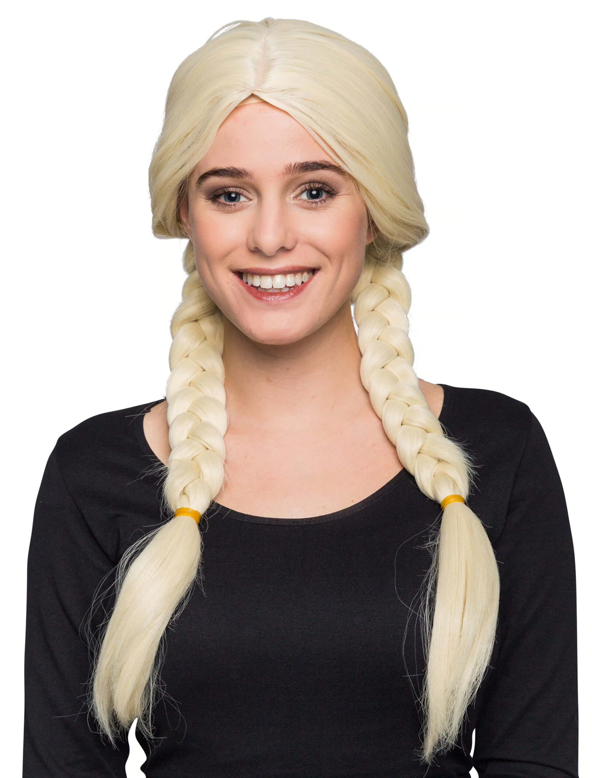 Ob zum Dirndl oder zum Heidi- oder Rotkäppchen-Kostüm, diese blonde Perücke aus Kunsthaar sitzt immer perfekt. Das lange, hellblonde Haar ist zu zwei hübschen Flechtzöpfen gebunden, die jeweils mit einem Haargummi zusammen gehalten werden. Ein tolles Accessoire, das Deinen Typ komplett verändert!