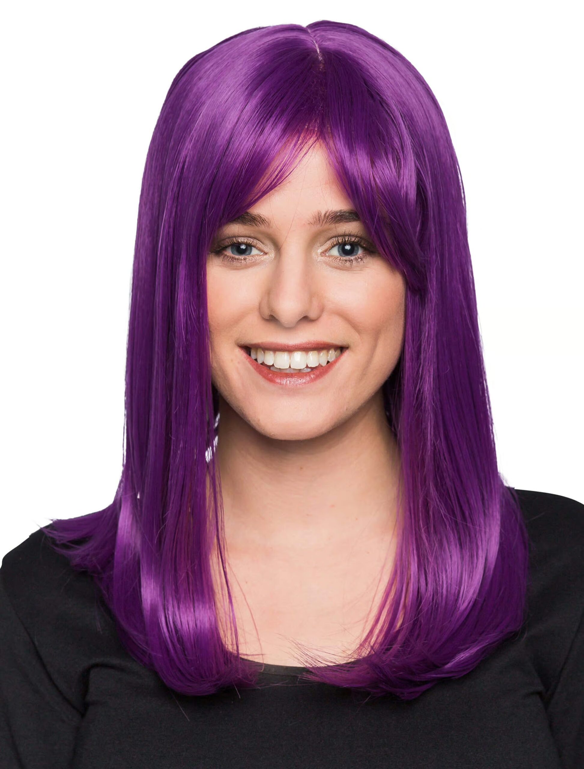 Der perfekte Farbtupfer für Deinen Kopf! Die Damen Perücke mittellang glatt Bangs besticht nicht nur durch das leuchtende, lilafarbene Kunsthaar, sondern auch durch den schulterlangen Schnitt. Sie passt perfekt zu einer Vielzahl von Kostümen und verwandelt jede Deiner Verkleidungen zu einem aufregend-farbigen Hingucker!