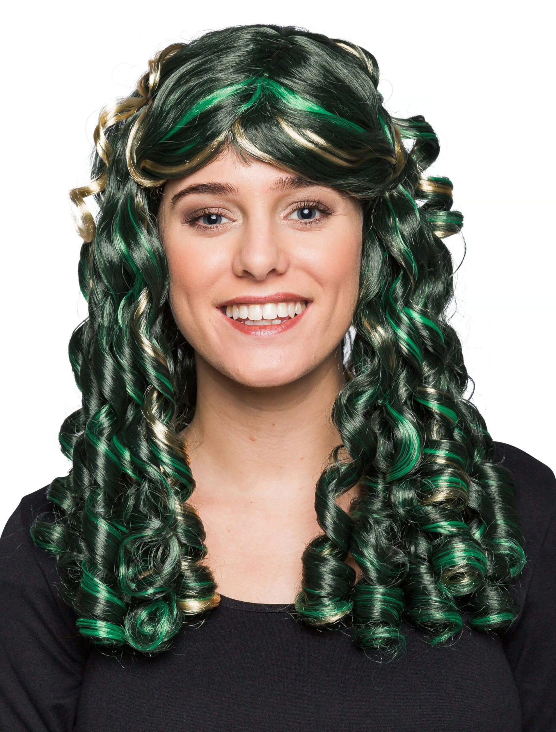 Kostümzubehör Kostümzubehör Perücke Nixe Schillerlocken Pony grün/blond