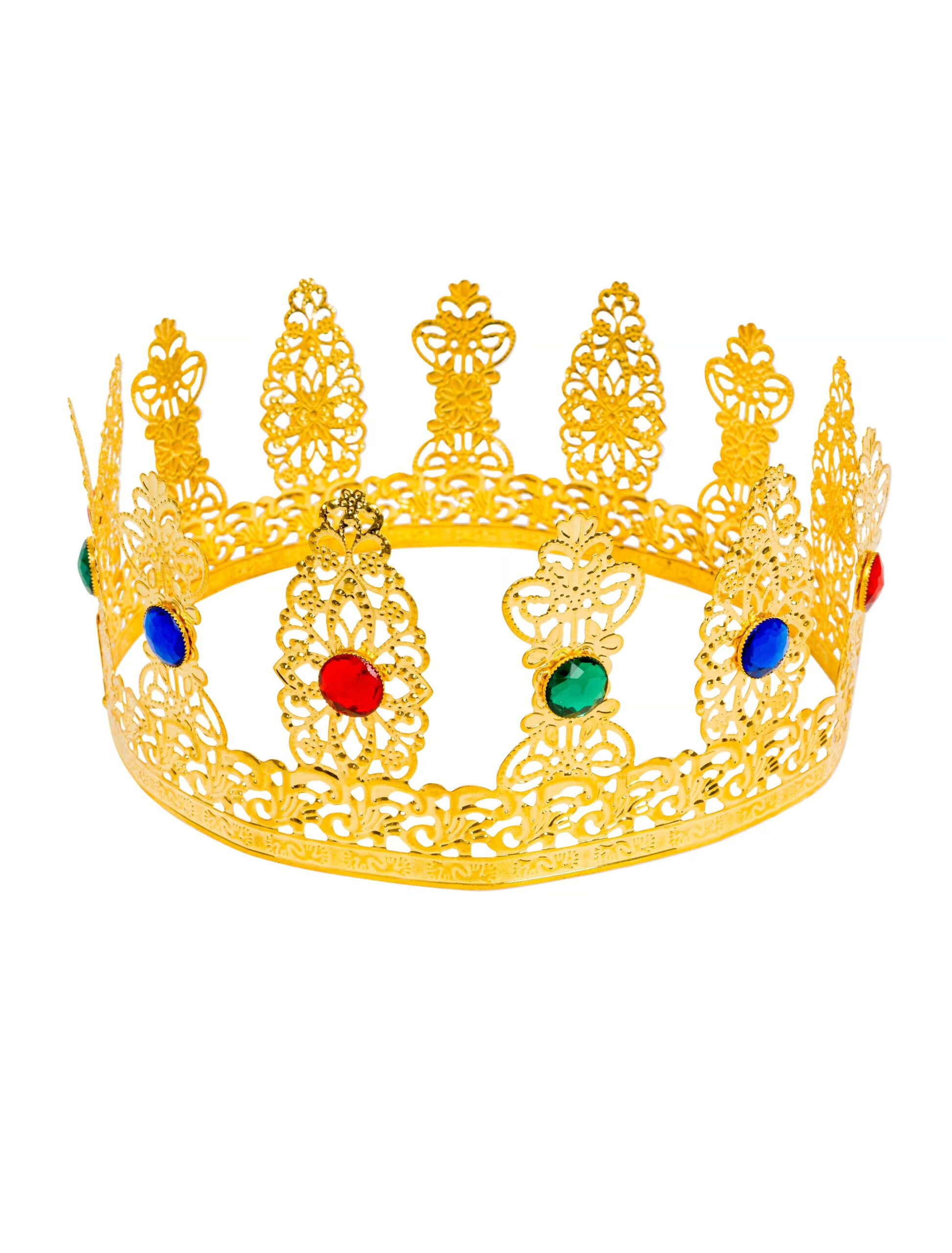Karneval steht vor der Tür, Dein König Kostüm ist beinahe komplett, aber Dir fehlt noch ein entscheidendes Detail: die Krone? Diese Krone ist 8,5 cm hoch und entspricht einem Kopfumfang von etwa 60 cm. Dann bist Du hier genau richtig! Die goldene Krone aus Metall fällt besonders durch die bunten Steinchen positiv auf und sorgt dafür, dass Du aus der Masse herausstichst.