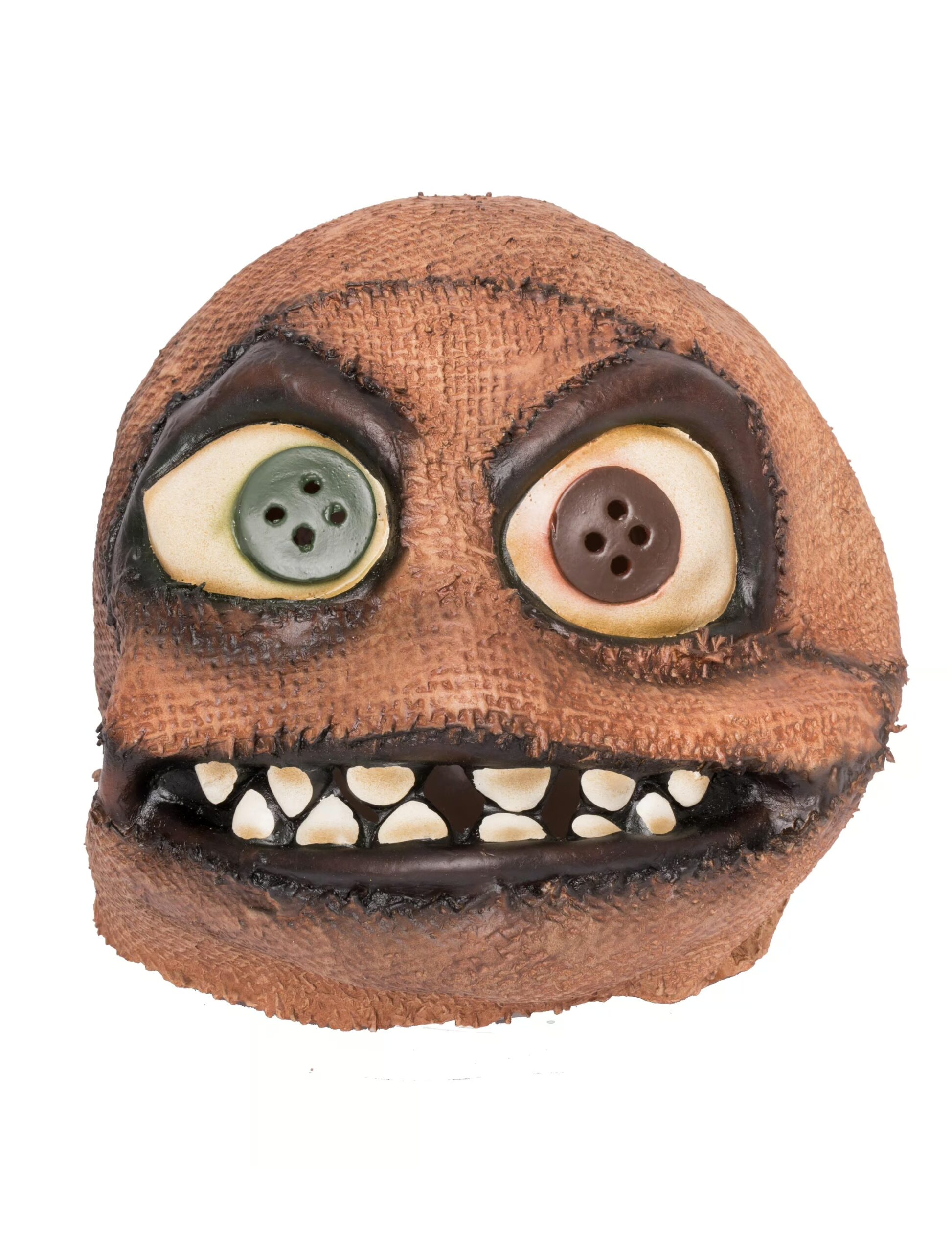 Eine gruselige Maske verleiht dem Halloween-Kostüm auf jeden Fall einen einzigartigen Charme. Diese Latexmaske besitzt große Knopfaugen, schiefe Zähne und die Haut ist in einer braunen grobmaschigen Stoff-Optik gestaltet, bei dem man noch die Nähte erkennen kann. Die Maske lässt sich auch ideal mit einem Vogelscheuchen Kostüm kombinieren und würde dies umso authentischer machen.