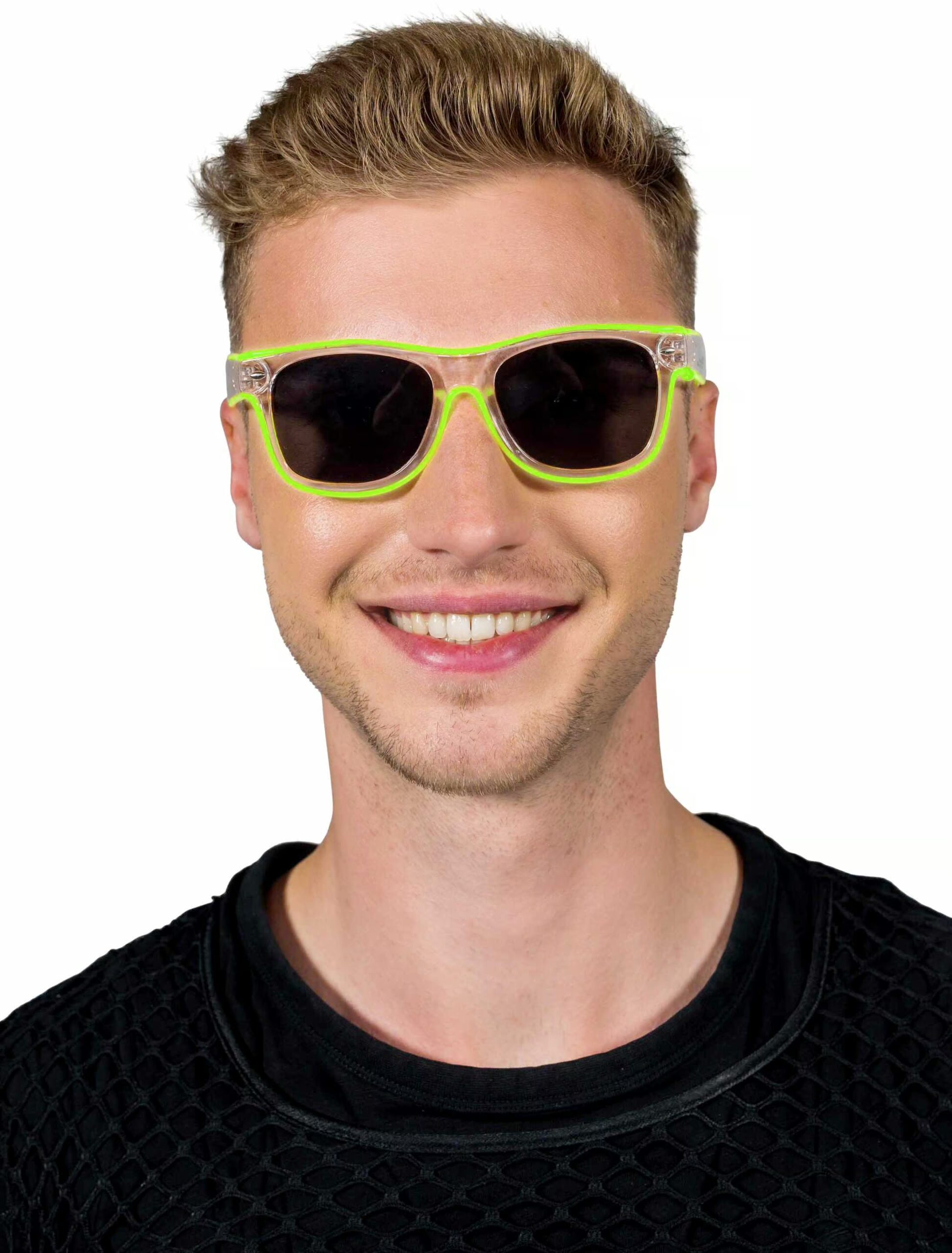 Weniger ist manchmal mehr und mit der witzigen LED Brille hast Du ein besonders auffälliges Accessoire, das die Blicke ganz von selbst auf sich zieht, sodass Du Dir um Deine weitere flippige oder biedere Faschingskostümierung keinen allzu großen Kopf machen brauchst. Die originelle LED Kunststoffbrille inklusive zwei AA-Batterien ist der Hingucker, den Du nach Lust und Laune dauerhaft, langsame oder schnell blinken lassen kannst. Mittels Schalter am Batteriefach kannst Du die Brille ein- und ausschalten.