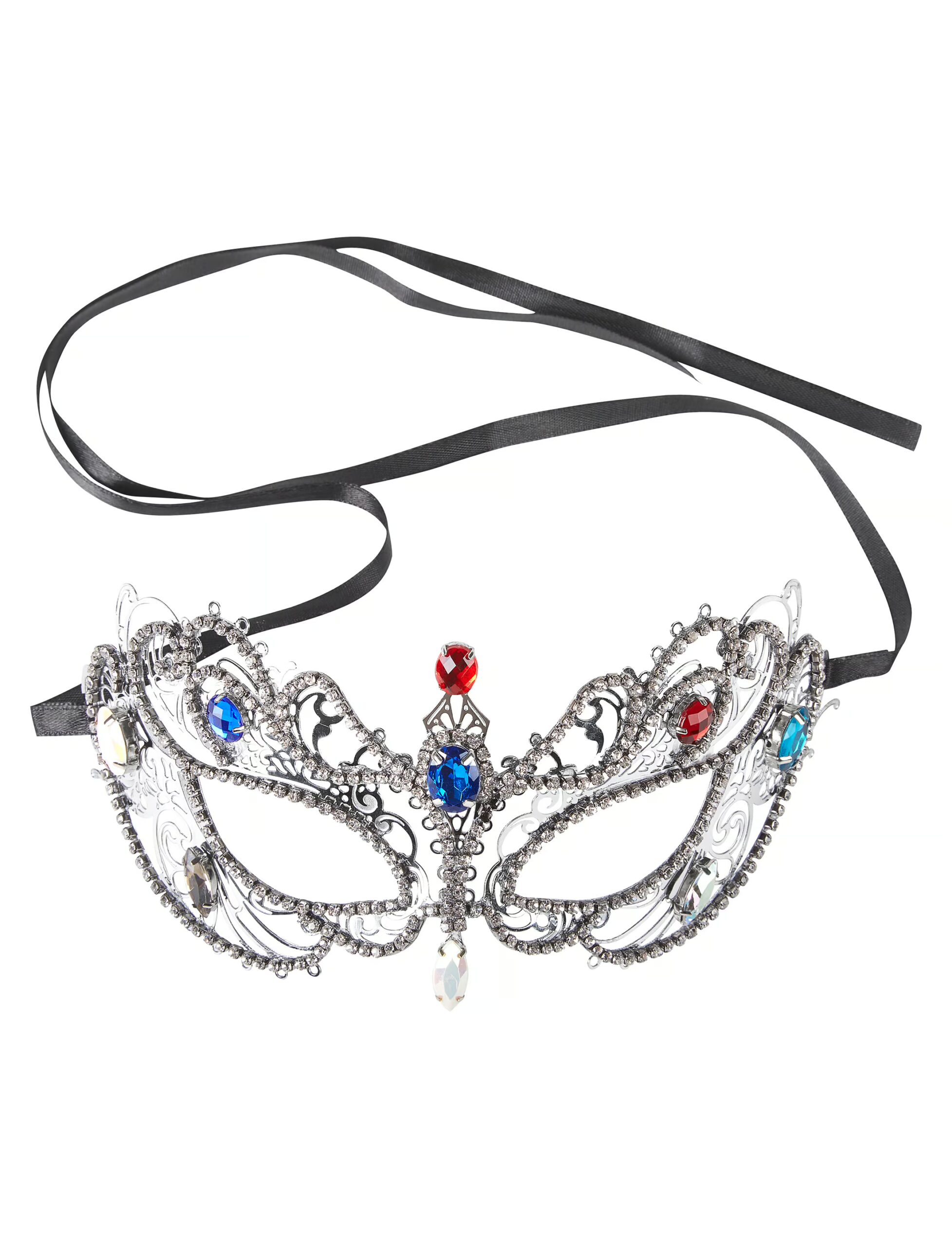 Mit dieser schicken Maske im venezianischen Stil verdeckst Du Dein Gesicht auf besonders elegante Art und Weise! Die Augenmaske zum Umbinden ist mit unzähligen, funkelnden Steinchen verziert. Perfekt für Karneval, Mottoparty oder den nächsten Maskenball!