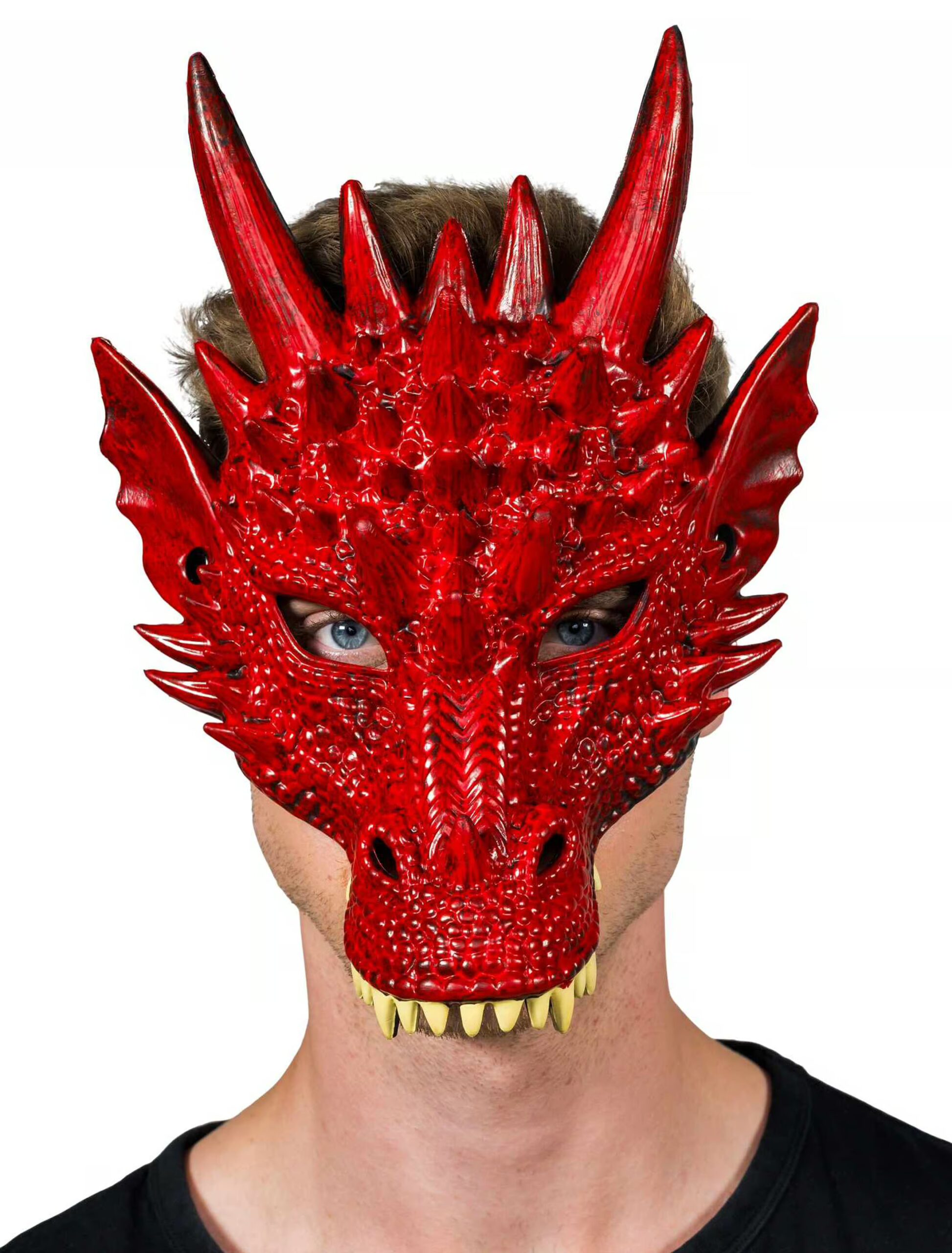 Für den ultimativen Feueratem Look – Mit unserer Drachenmaske, wirst du nicht nur zur Legende, sondern auch zum unangefochtenen König der Kostümpartys! Die Maske verwandelt dich in ein furchteinflößendes, feuerspeiendes Ungeheuer. Das Design der Maske ist sehr detailverliebt, so wirst du garantiert zum Mittelpunkt jeder Veranstaltung. Ob du nun den Drachen aus deinem Lieblingsfilm verkörpern oder einfach mal richtig Eindruck schinden willst, diese Maske lässt dich mit deinem „Röchelndem-Riesen-Look“ durch die Menge ziehen. Also setz die Maske auf, zeig dein Drachenfeuer und erobere jede Party im Sturm!