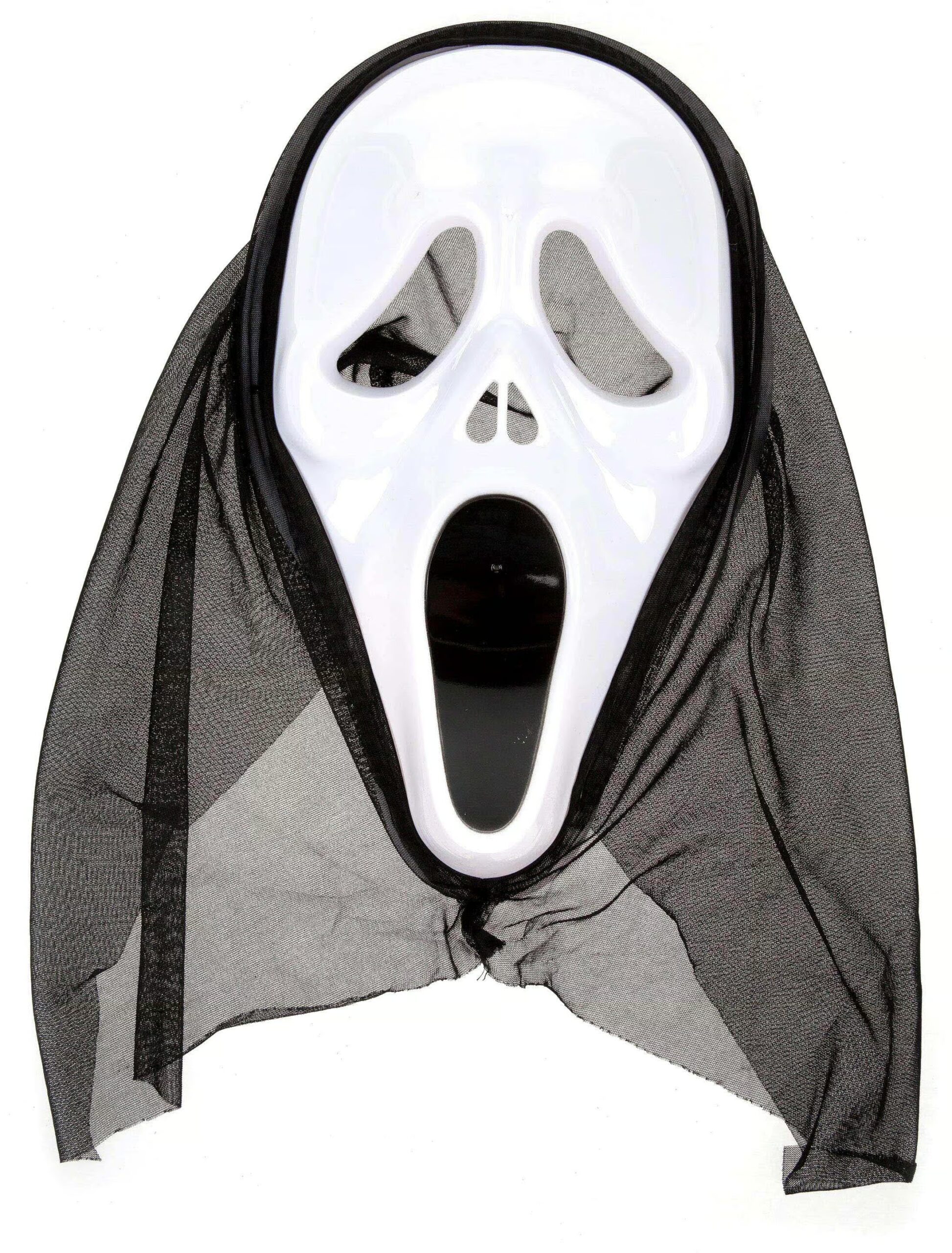 Gruselige Maske, mit der Du Dich auf Halloween oder auf Karneval im Nu zur Schreckensfigur verwandelst. Die Perücke ist an den Augen, an der Nase und am Mund großzügig ausgeschnitten. Das verzerrte Gesicht ist zusätzlich mit schwarzem Stoff verziert. Eine Maske mit großer Wirkung!