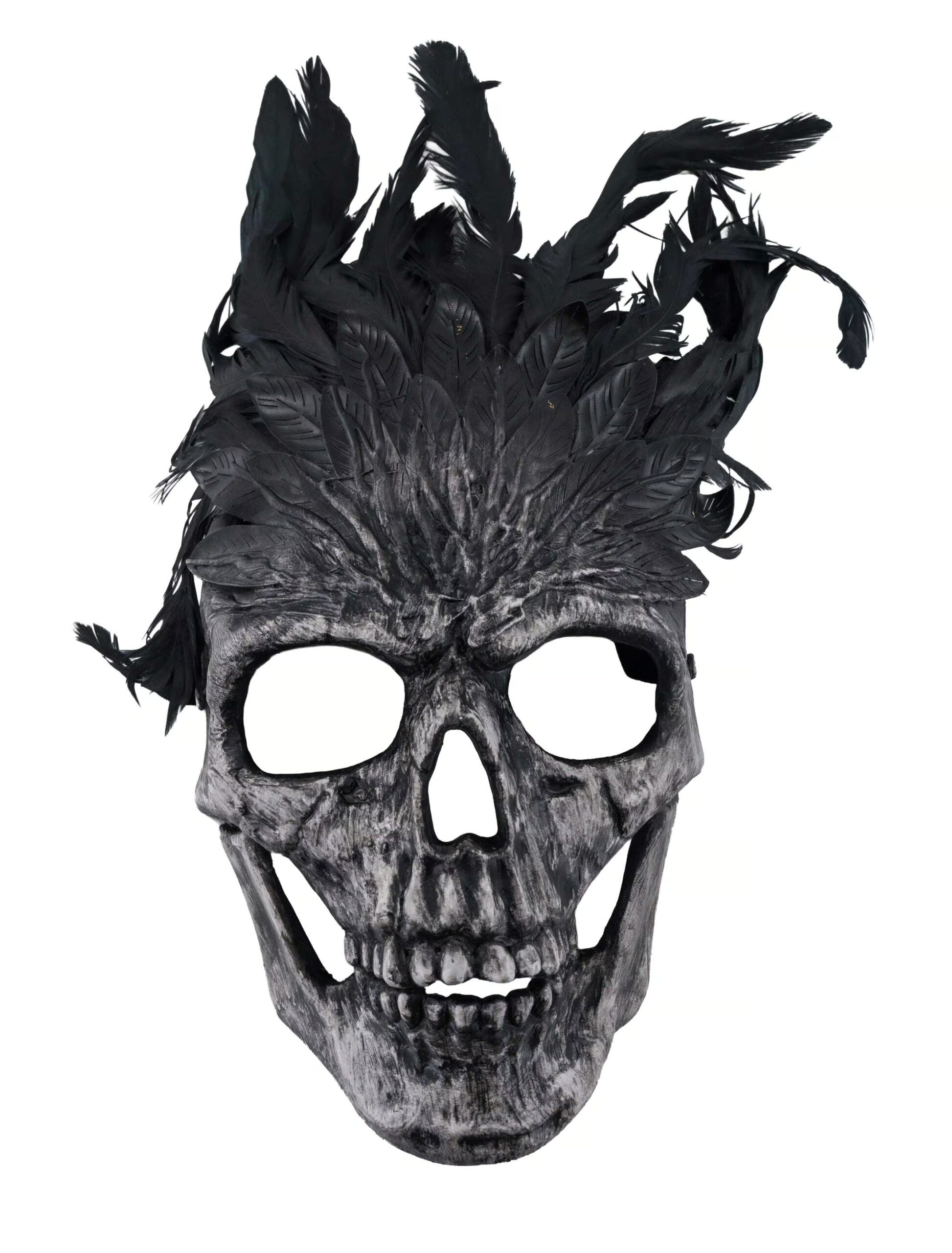 Maske Totenkopf mit Federn grau, ideal für Karneval & Fasching