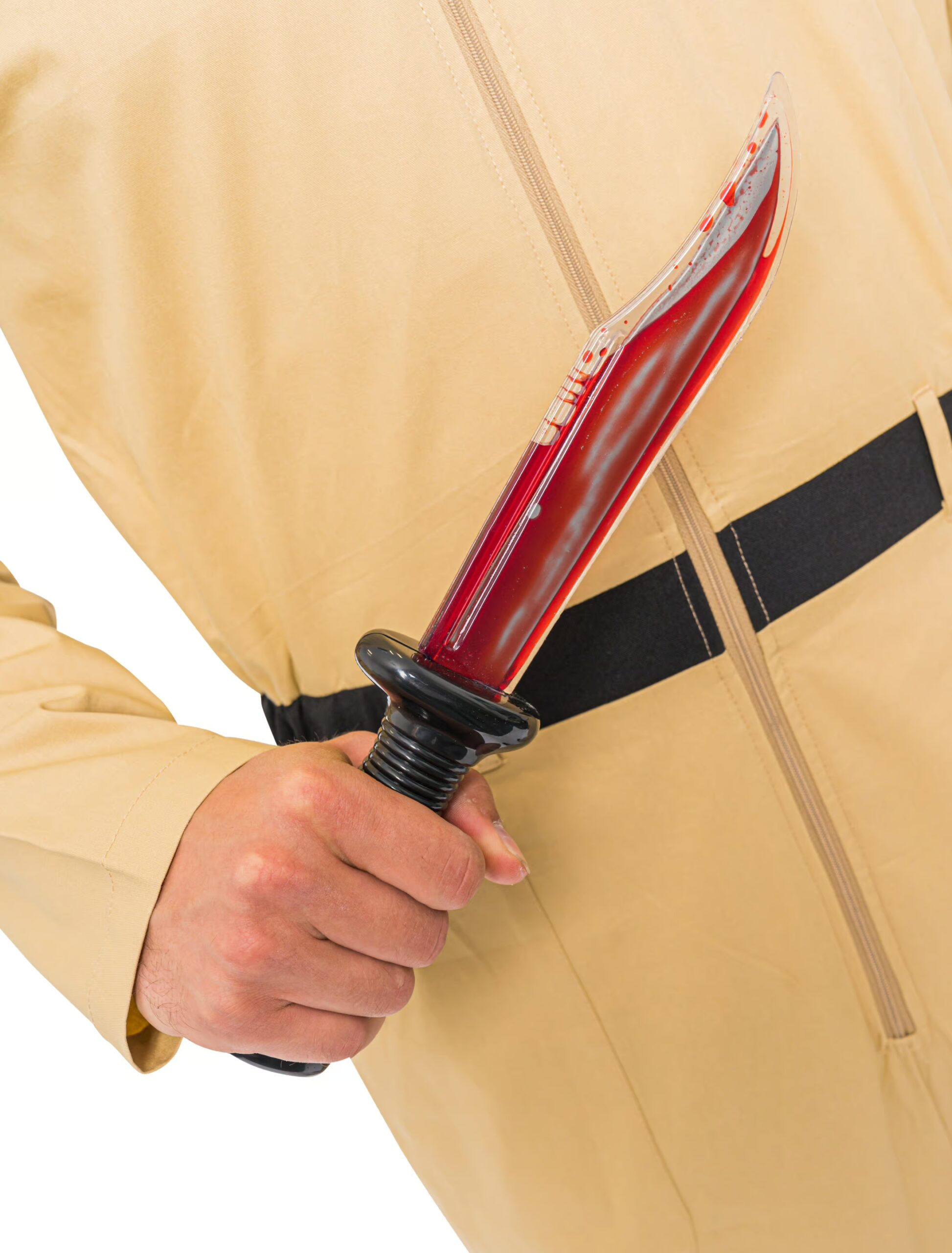 Vorsicht, denn diese Requisite (aus Kunststoff) ist nichts für schwache Nerven! Das ca. 34 cm große Messer mit dem schwarzen Griff und dem integrierten Kunstblut in der Klinge sieht täuschend echt aus und wird dem ein oder anderen sicher einen Schauer über den Rücken laufen lassen. Das macht das blutige Messer zum perfekten Accessoire für die kommende Halloweenparty!