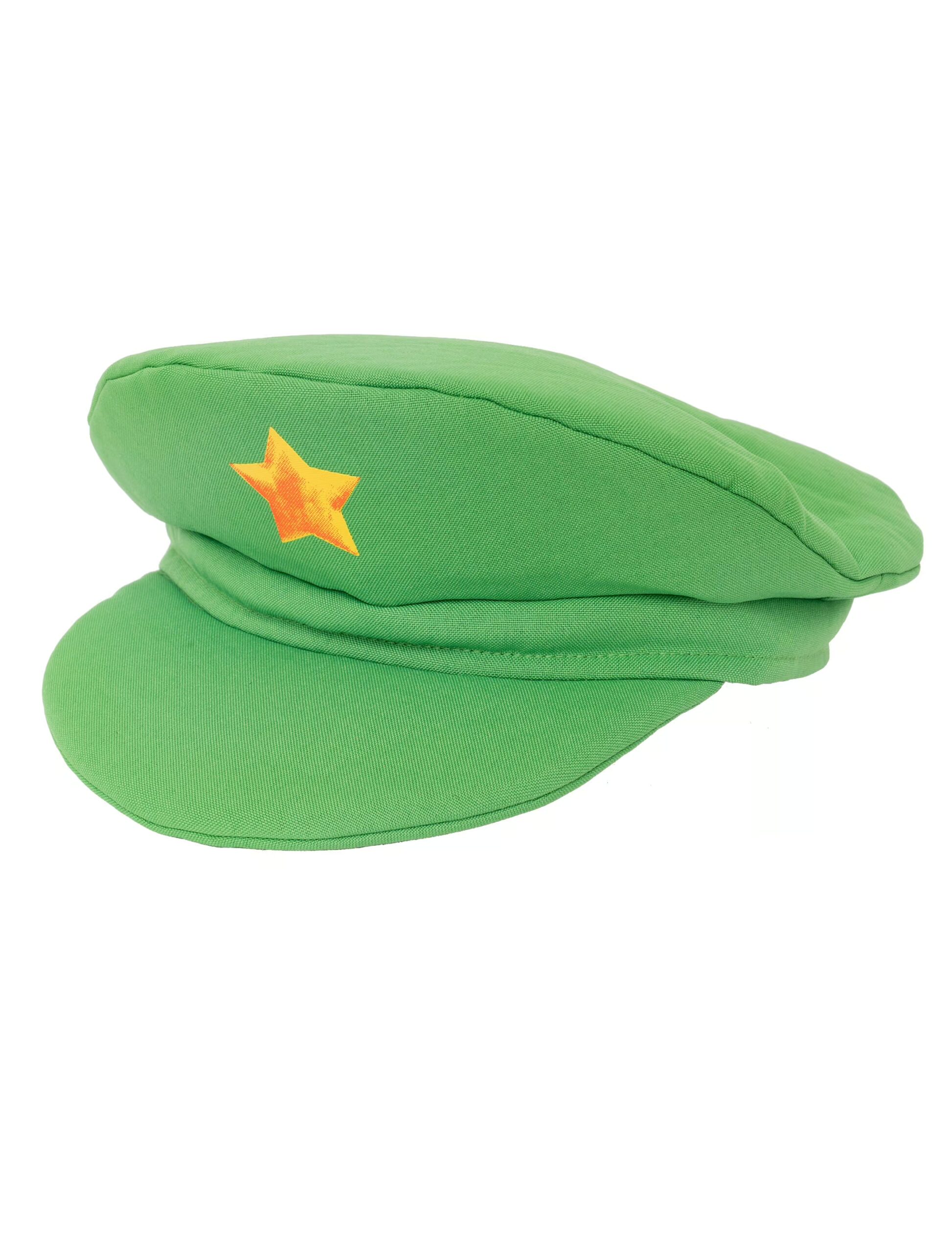 Lässige Mütze, die nicht nur toll aussieht, sondern sich auch zu einer Vielzahl an Verkleidungen kombinieren lässt. Sie ist aus einem leuchtend-grünen Stoff gefertigt und wird in der Front von einem goldfarbenen Stern geziert. Der coole Stil macht die Mütze für Herren und Damen zu einem tollen Accessoire für Klempner-Kostüme!