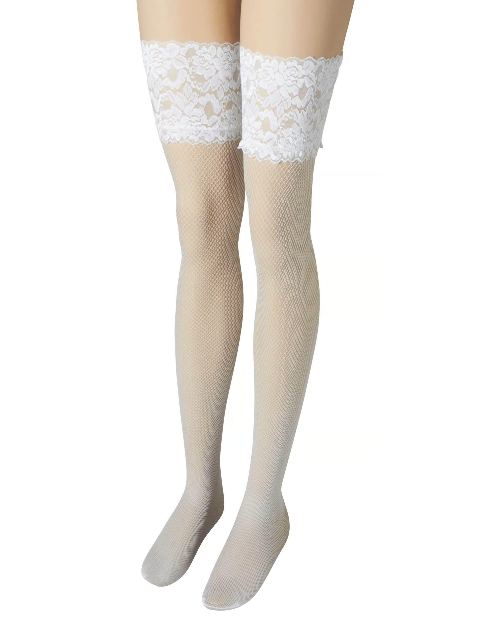 So sexy können Netzstrümpfe (Fishnet socks) sein! Dieses weiße Exemplar besticht durch die groben Maschen und die romantische Blümchen-Spitze an den Bündchen. Besonders gut kommen die halterlosen Strümpfe (Overknees) zu kurzen Kleidchen und Röcken zur Geltung. Ein toller Hingucker zu jedem Rotkäppchen-, Engel- oder Prinzessinnen-Kostüm!
