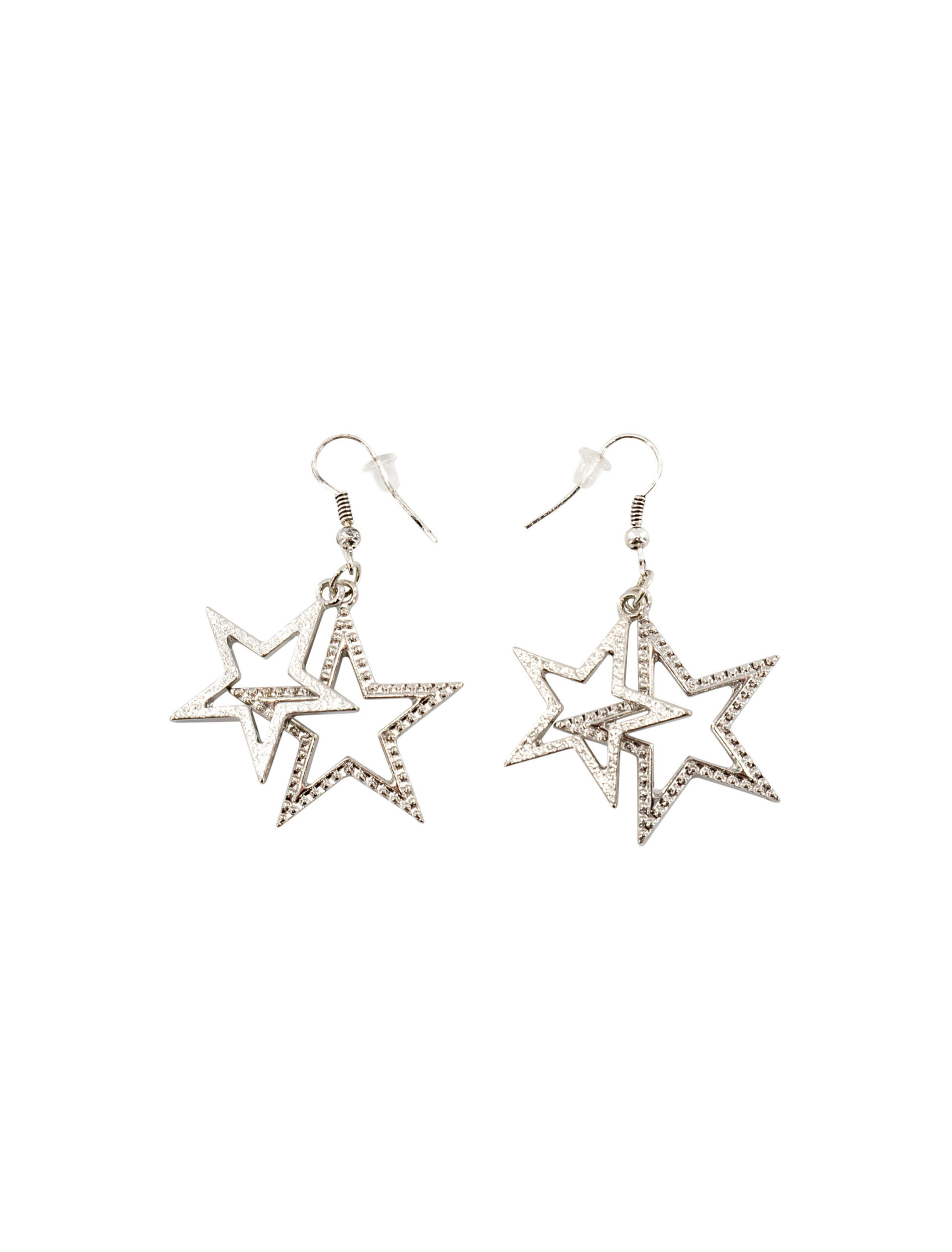 Ein modisches Accessoire sowie ein reizendes Zubehör für Faschings-, Karneval- und Party Outfits sind unsere filigranen, silbernen Ohrringe mit den Doppelsternen, die bei jeder Kopfbewegung nicht nur anmutig hin und her schaukeln, sondern die auch durch die liebevoll gestalteten Details aparte Blickfänger sind. Die hübschen Ohrringe bestehen aus Metall und sind mit Ohrbügeln und Sicherheitssteckern versehen. Sie machen nicht nur Deine Kostüme zum Fasching und Karneval komplett, sondern sind auch aparte Hingucker im Alltag.