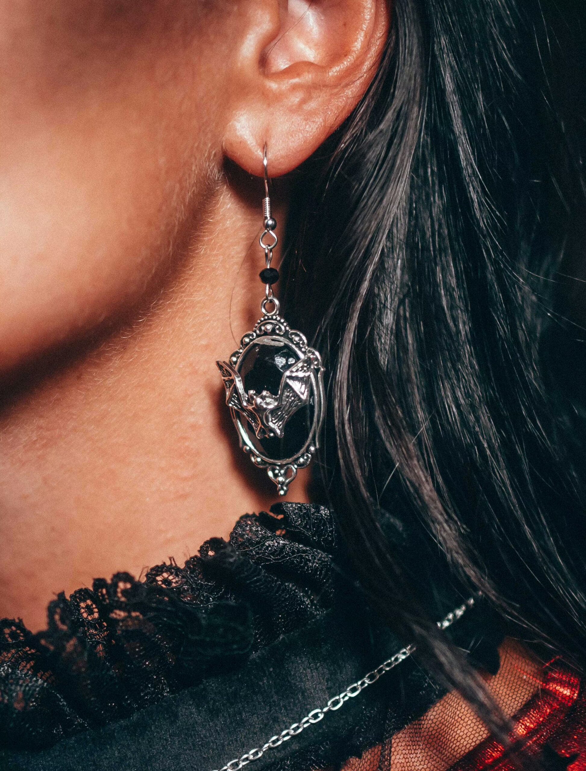 Ohrringe Fledermaus silber/schwarz, ideal für Karneval & Fasching
