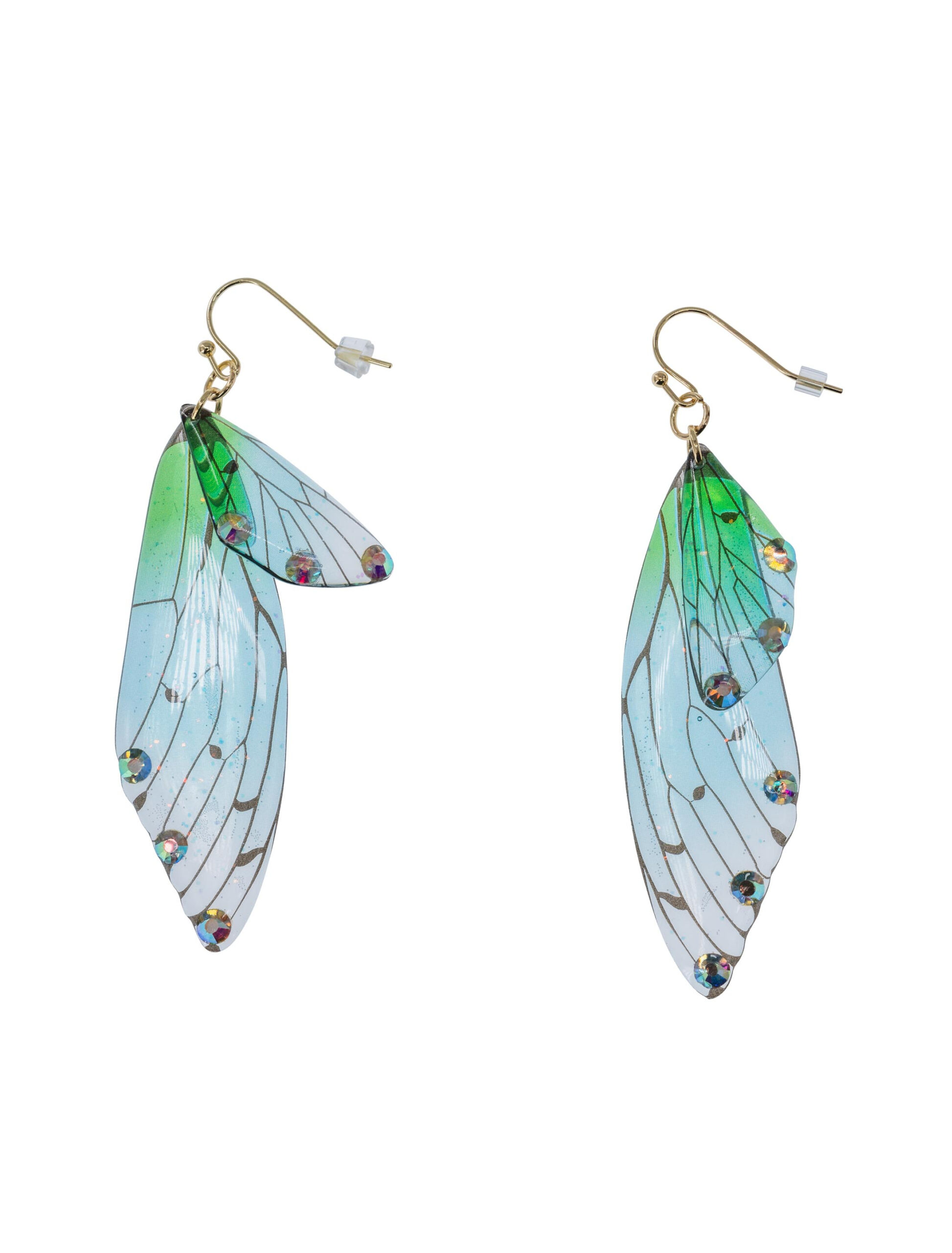 Ohrringe Flügel grün/blau, ideal für Karneval & Fasching