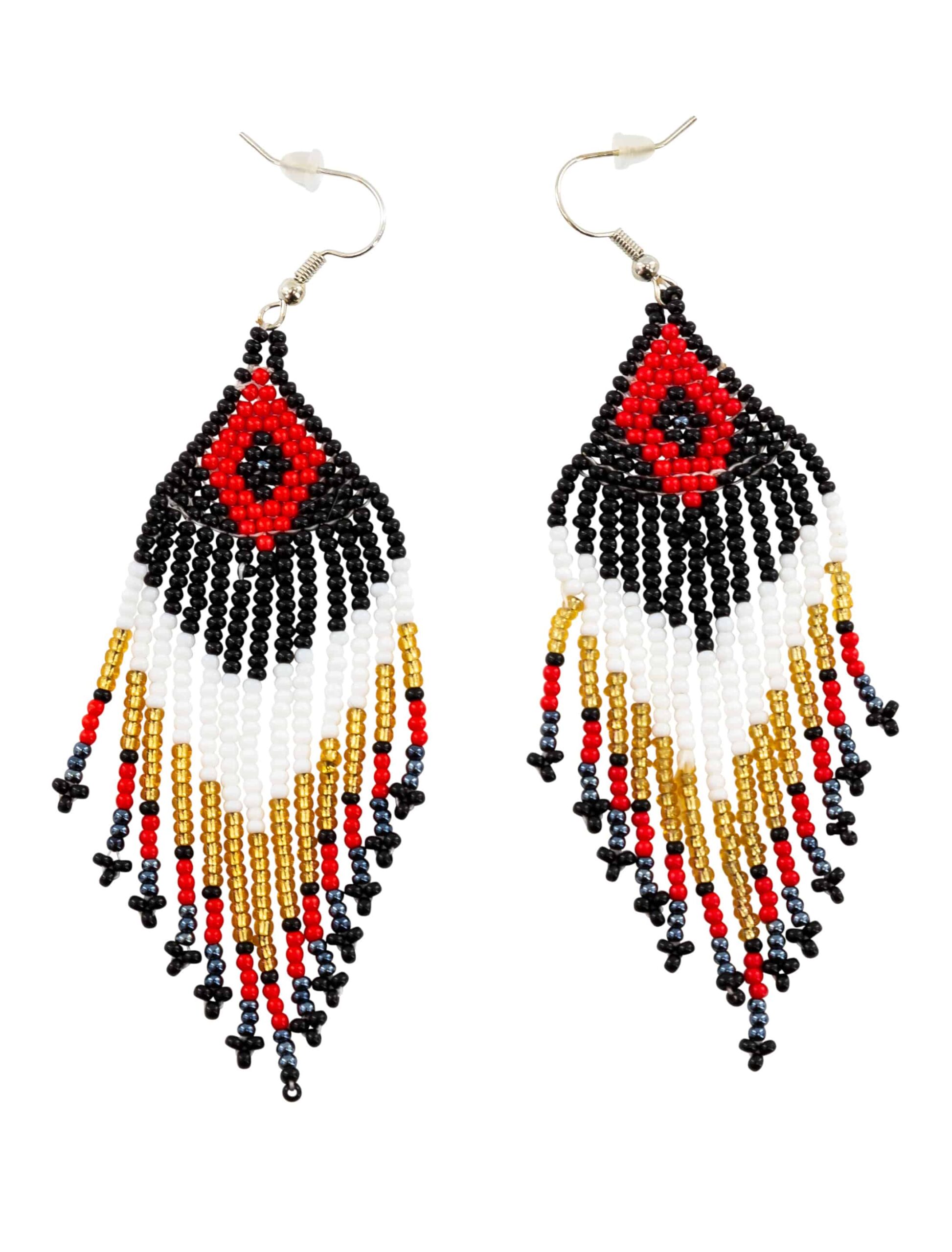 Mit diesen wundervollen schwarz-weiß-rot Perlen Ohrringen samt Ohrbügeln und Sicherheitssteckern im indianischen Look kannst Du Dein Indianer- oder Wild-West-Kostüm wirkungsvoll aufwerten. Das graphische Design und die perfekte Farbzusammenstellung machen sie zu wahren Eyecatchern. Dieser außergewöhnliche Ohrschmuck ist ein super Accessoire, mit dem Du nicht nur zum Fasching, Karneval sowie auf Mottopartys und Ethnopartys bewundernde Blicke erntest, sondern der auch im Alltag Deinen individuellen Style unterstreichst.