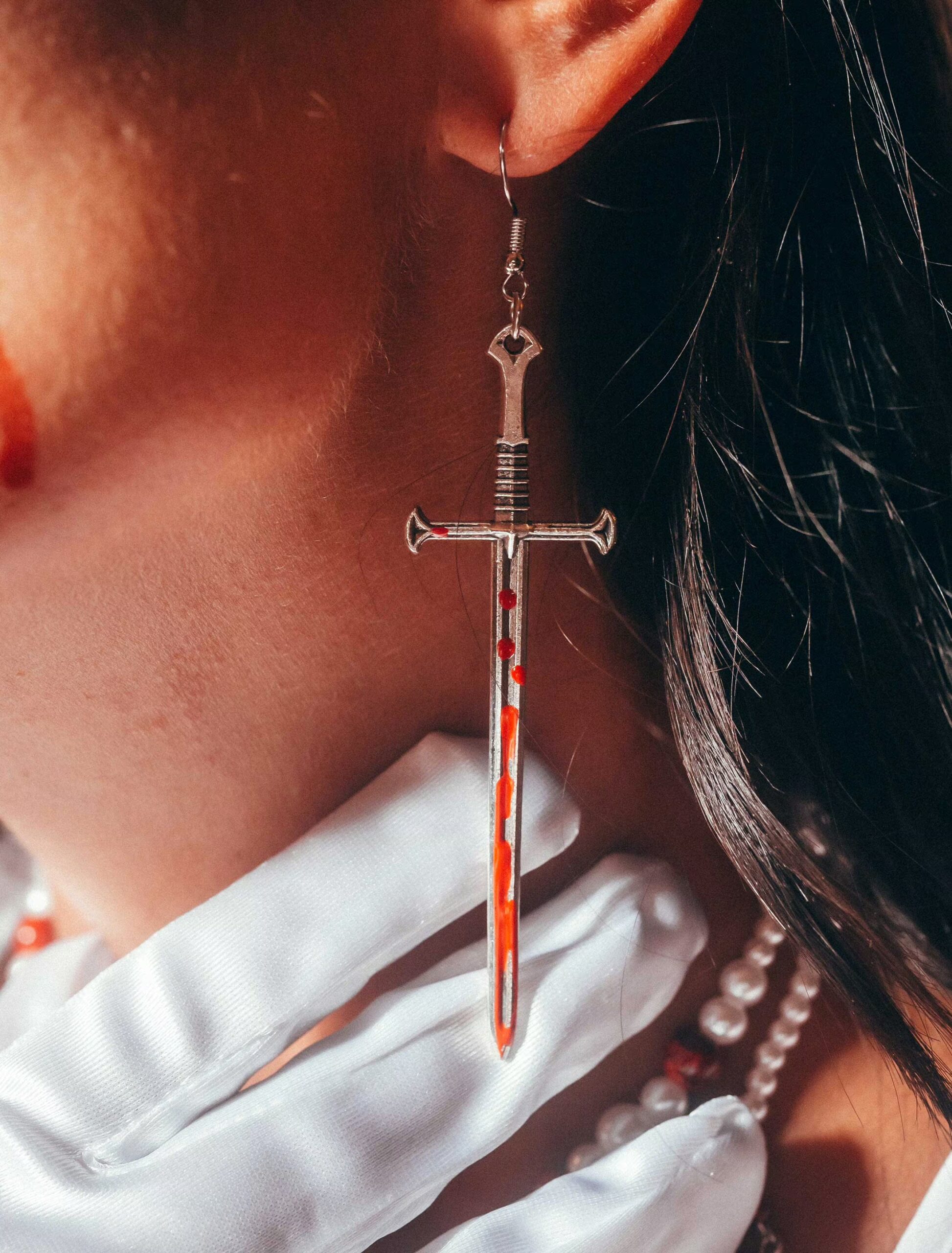Ohrringe Schwert blutig rot/silber, ideal für Karneval & Fasching