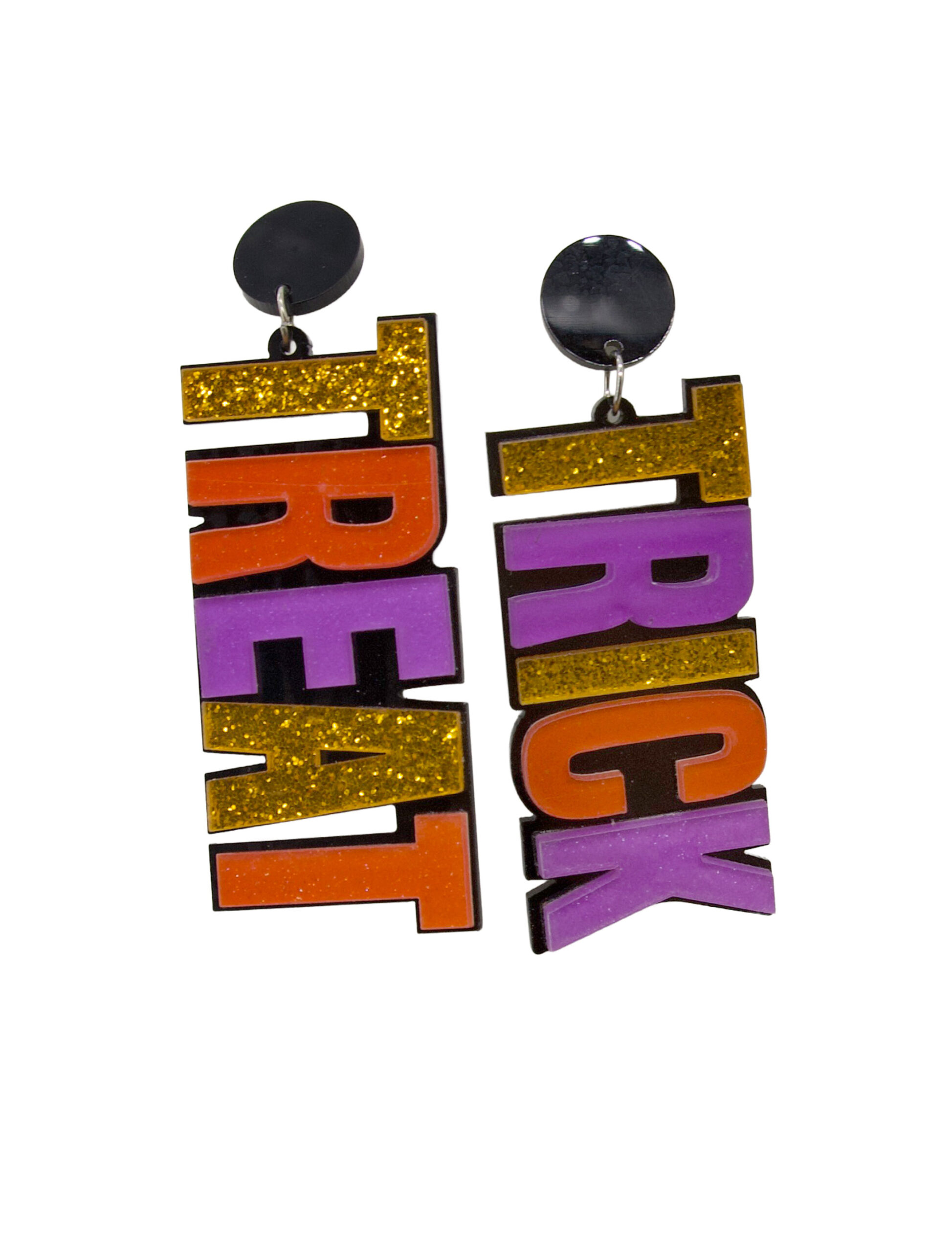 Unsere Ohrringe trick or treat sind das perfekte Accessoire für alle Halloween-Fans mit Sinn für Details. Der eine Anhänger zeigt das Wort „TRICK“, der andere das Wort „TREAT“ – beide gestaltet in klassischen Halloween Farben. Zusammen ergeben sie einen witzigen Hingucker, der sofort für Party-Stimmung sorgt. Ob zur Halloween-Party, zum Karneval oder einfach als verspieltes Statement im Alltag – mit unseren trick or treat Ohrringen setzt du ein farbenfrohes und schaurig-lustiges Zeichen!