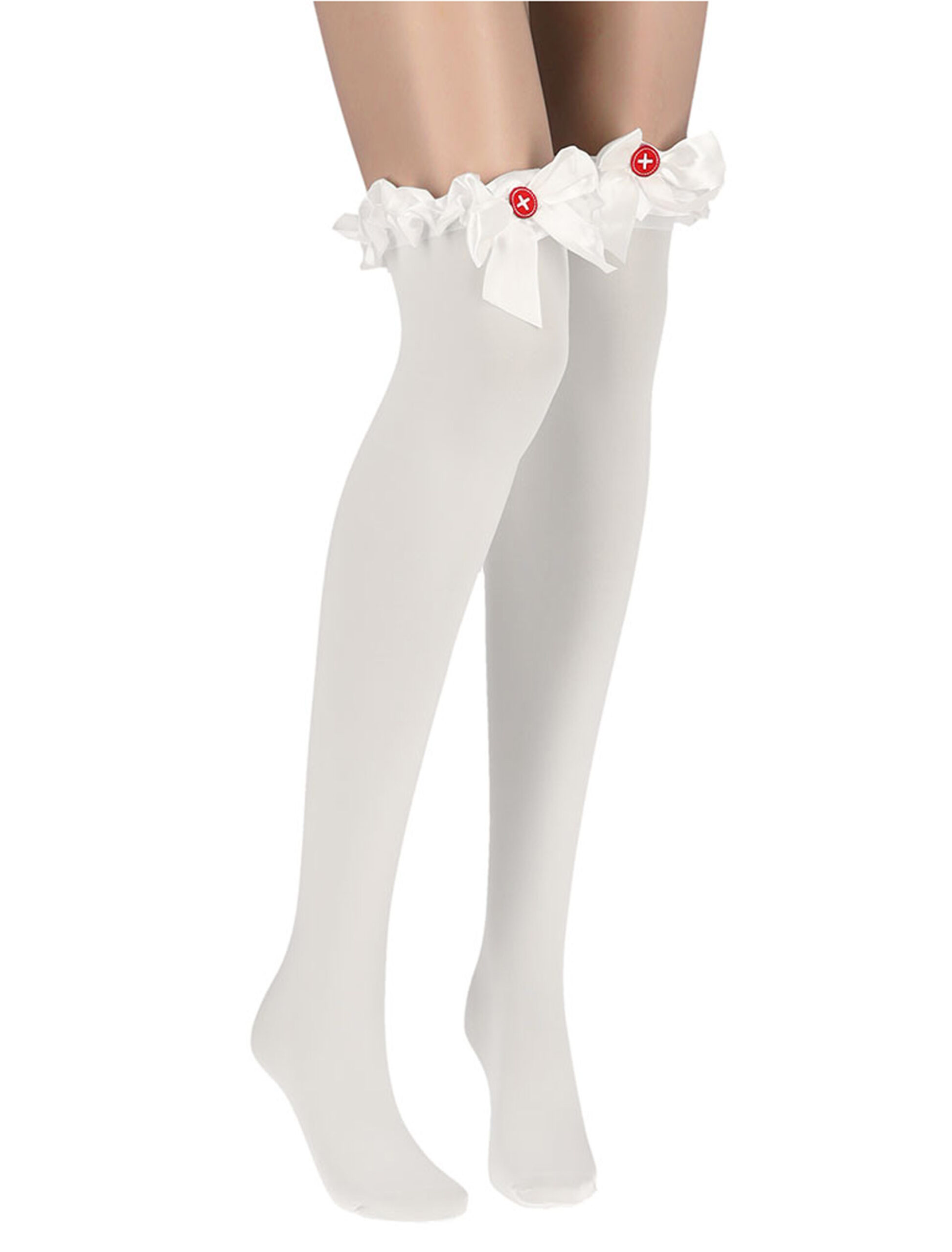 Overknee Strümpfe mit Schleife Damen weiß one size, ideal für Karneval & Fasching
