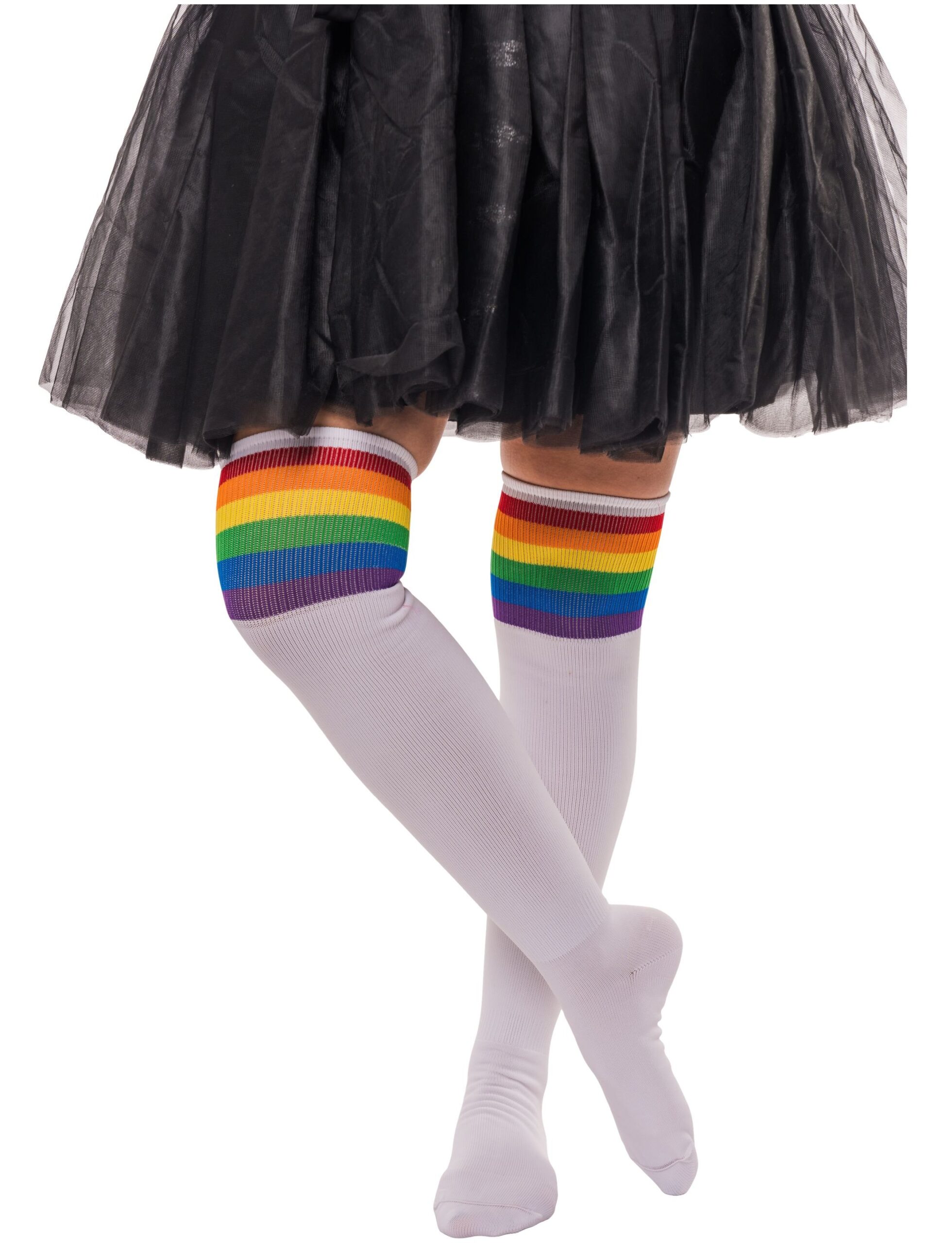 Kostümzubehör Overknees weiß mit Regenbogen Damen rainbow one size