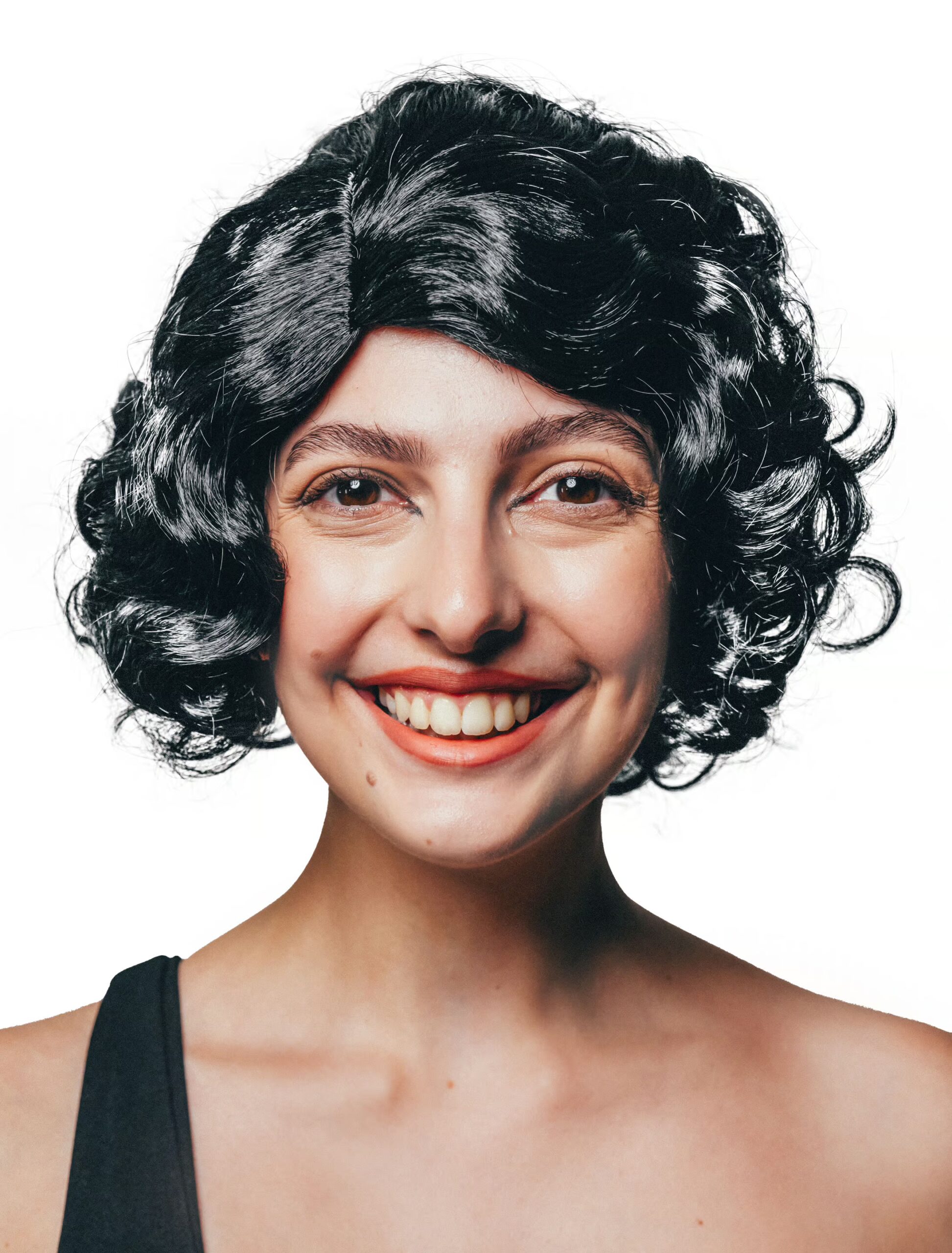 Perücke Kurzhaar mit Wasserwellen schwarz, ideal für Karneval & Fasching