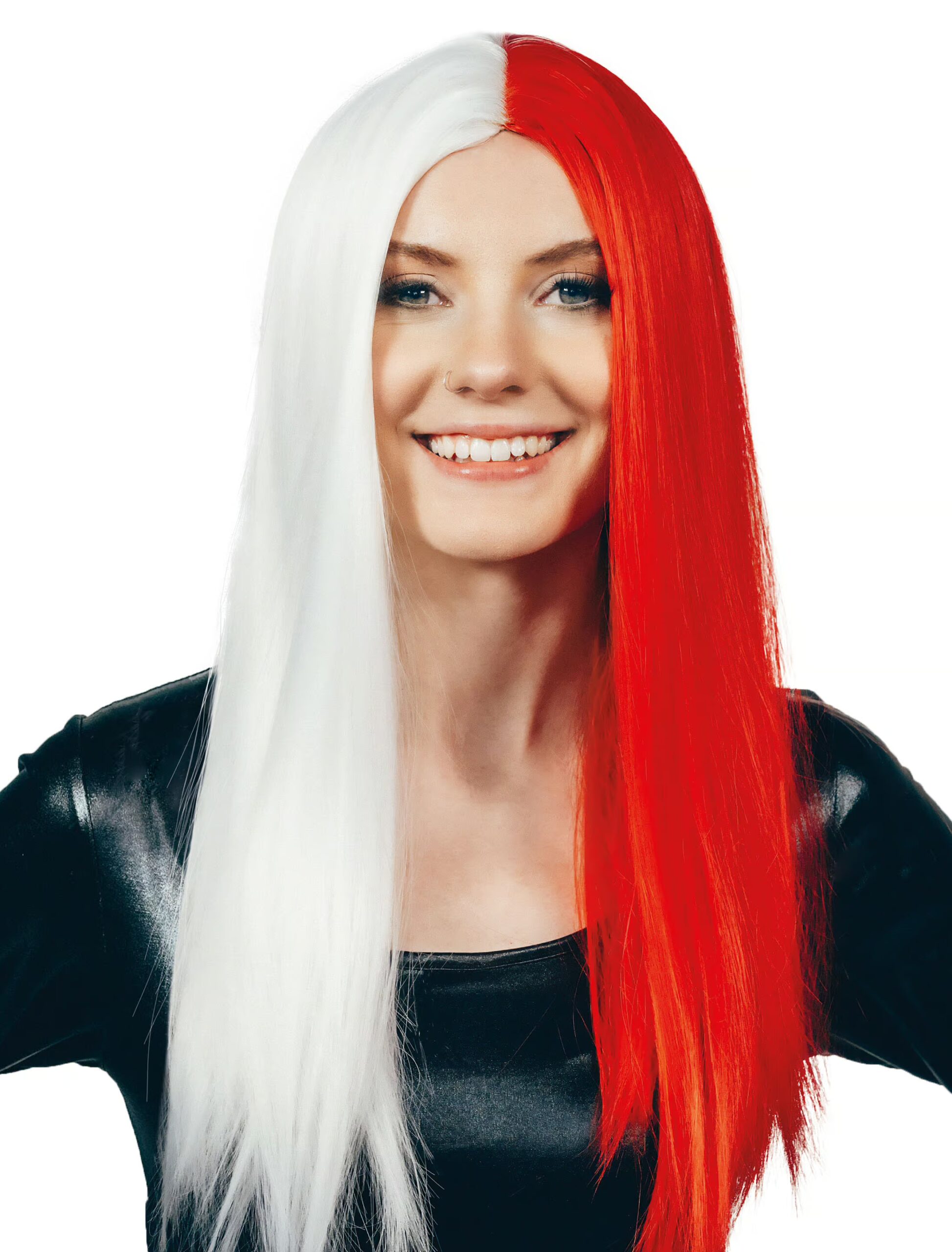 Bereit für einen Look, der doppelt so viel Eindruck macht? Unsere Langhaar Perücke vereint zwei Welten in einer Frisur: feuriges Rot auf der einen Seite und mystisches Weiß auf der anderen. Perfekt für alle, die sich nicht entscheiden können – oder einfach beides wollen! Ob du als rebellische Heldin, farbenfroher Kölner oder freches Karnevalswunder auftrittst, diese Perücke macht aus dir die Hauptattraktion!