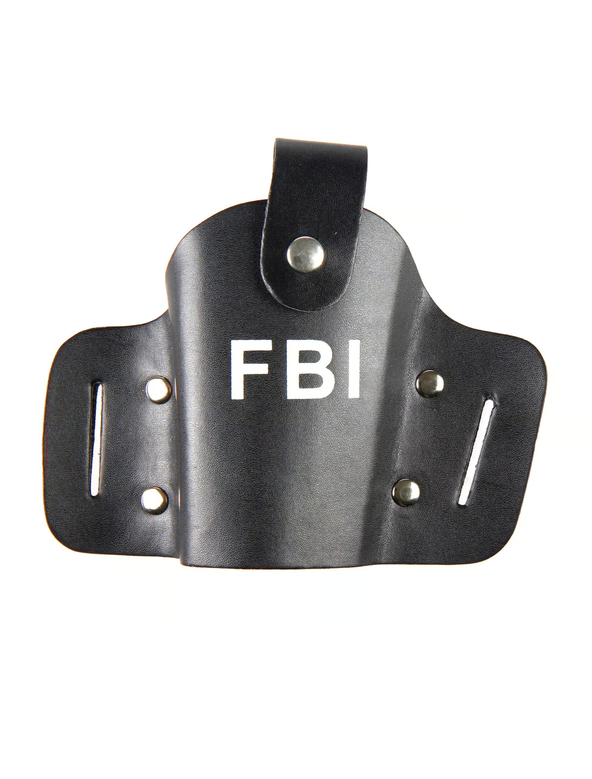 Perfekt für alle Spezial-Agenten unter Euch: unsere Kunstleder-Pistolenholster mit “FBI”-Aufdruck! Die Halterung ist universell passend und wird zum Beispiel am Gürtel befestigt. Ein kleiner Lederriemen sorgt dafür, dass Deine Knarre sicher an Ort und Stelle bleibt. Und wenn’s drauf ankommt, ziehst Du schneller als Dein eigener Schatten!
