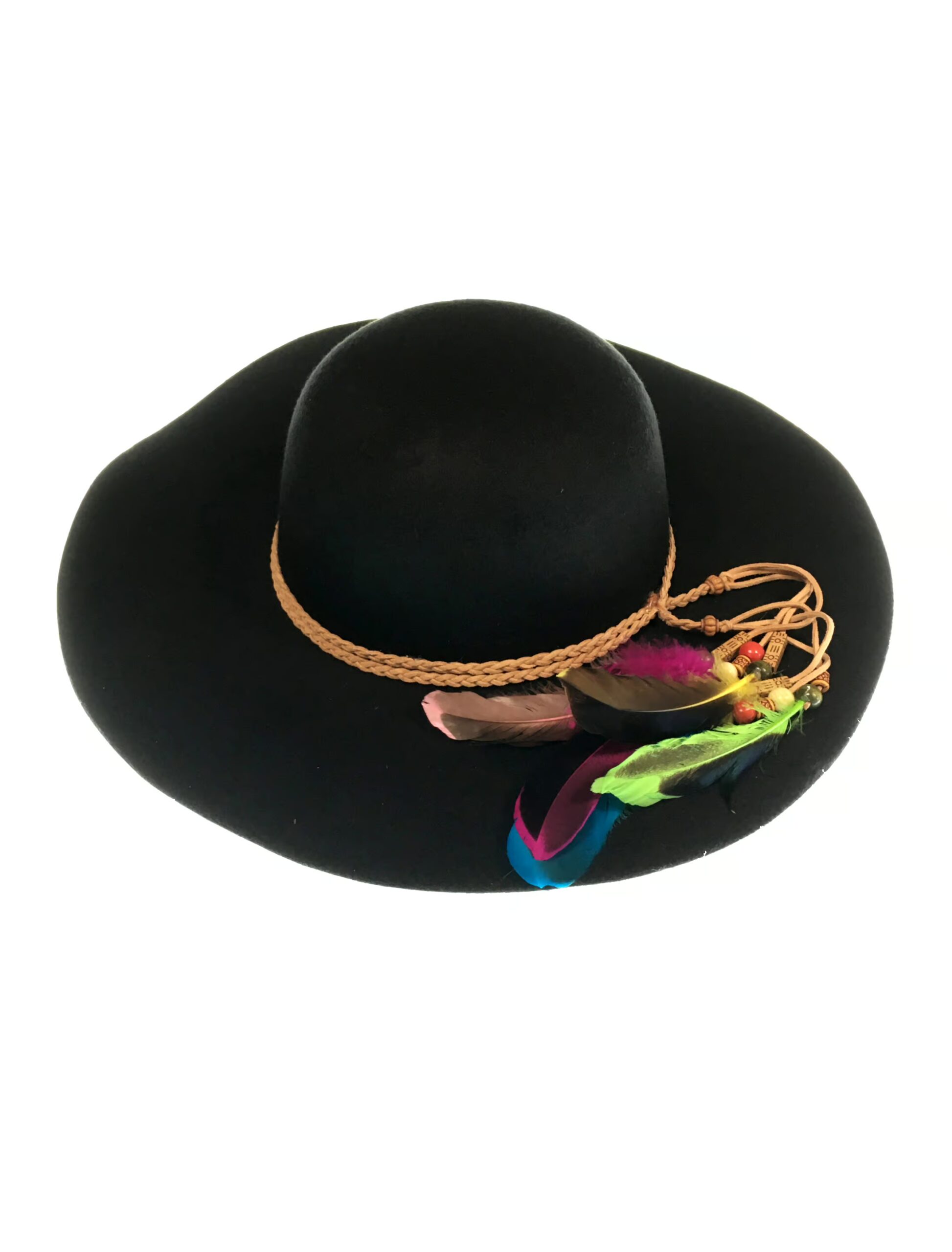 Genau die richtige Ergänzung zu Deinem Flower-Power- oder Hippie-Outfit! Dieser schwarze Schlapphut aus Polyester-Filz mit Federschmuck macht Dein Outfit komplett. Der Schlapphut entspricht einem Kopfumfang von ca. 58 cm und besteht aus 100% Polyester. Eine ideale Kopfbedeckung zu Deinem Hippie-Kostüm bei der nächsten Schlager Party!