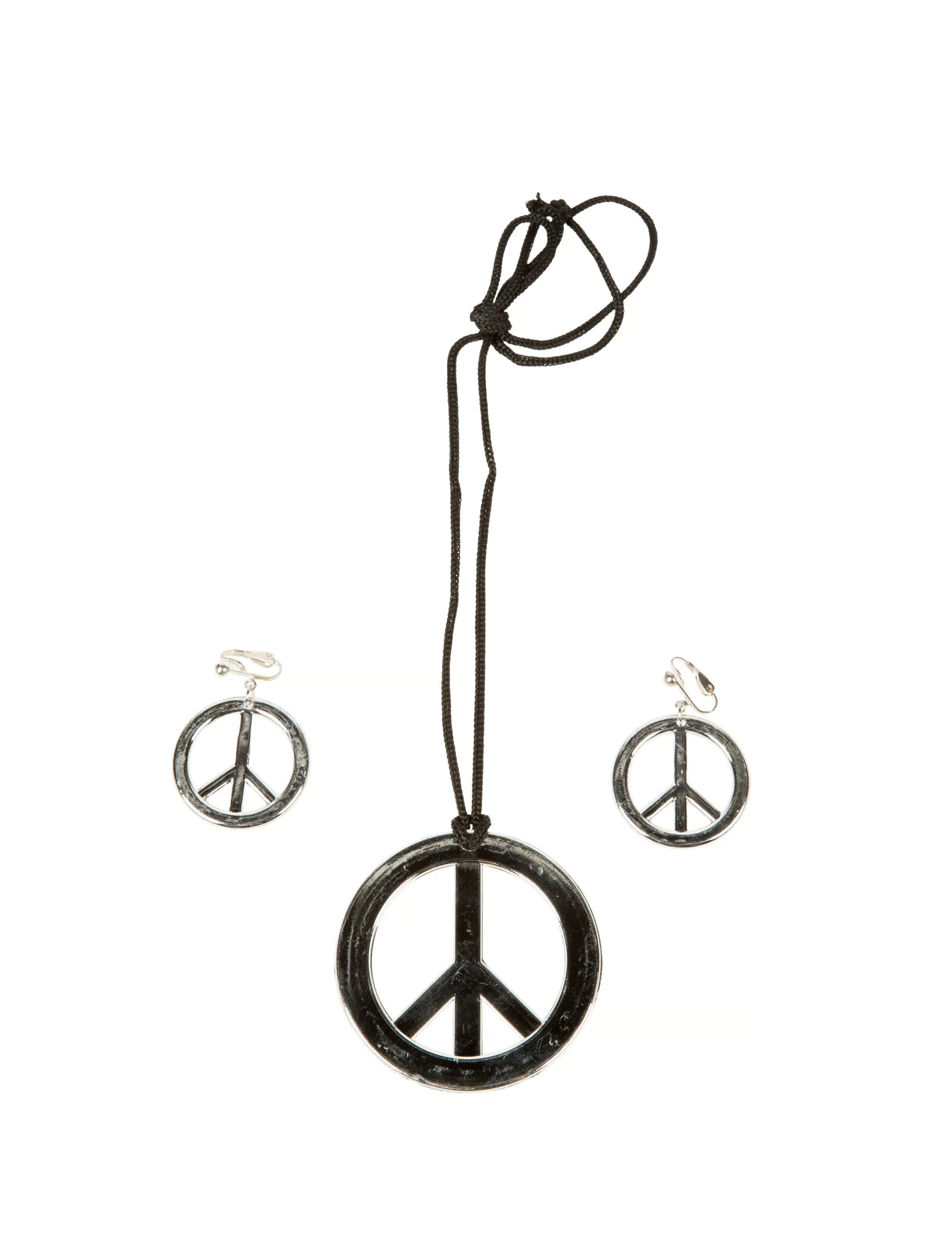 Die Bedeutung des kreisförmigen Symbols mit der dreizackigen Figur ist seit der Hippie-Bewegung auf der ganzen Welt bekannt: Das Zeichen steht für Frieden und fordert zur Beilegung aller Konflikte auf. Um diese Botschaft mit Deinem Outfit in der Welt zu verbreiten, ist das Peace Set, bestehend aus silbernen Ohrringen und einer Halskette, prädestiniert. Die Schmuckstücke stehen nicht nur für die gute Sache, sondern sehen nebenbei auch noch besonders cool aus. Ob Mottoparty oder Faschingsevent, mit den silbernen Ohrringen und der Kette des Peace Sets setzt Du einen markanten Fashion-Akzent.