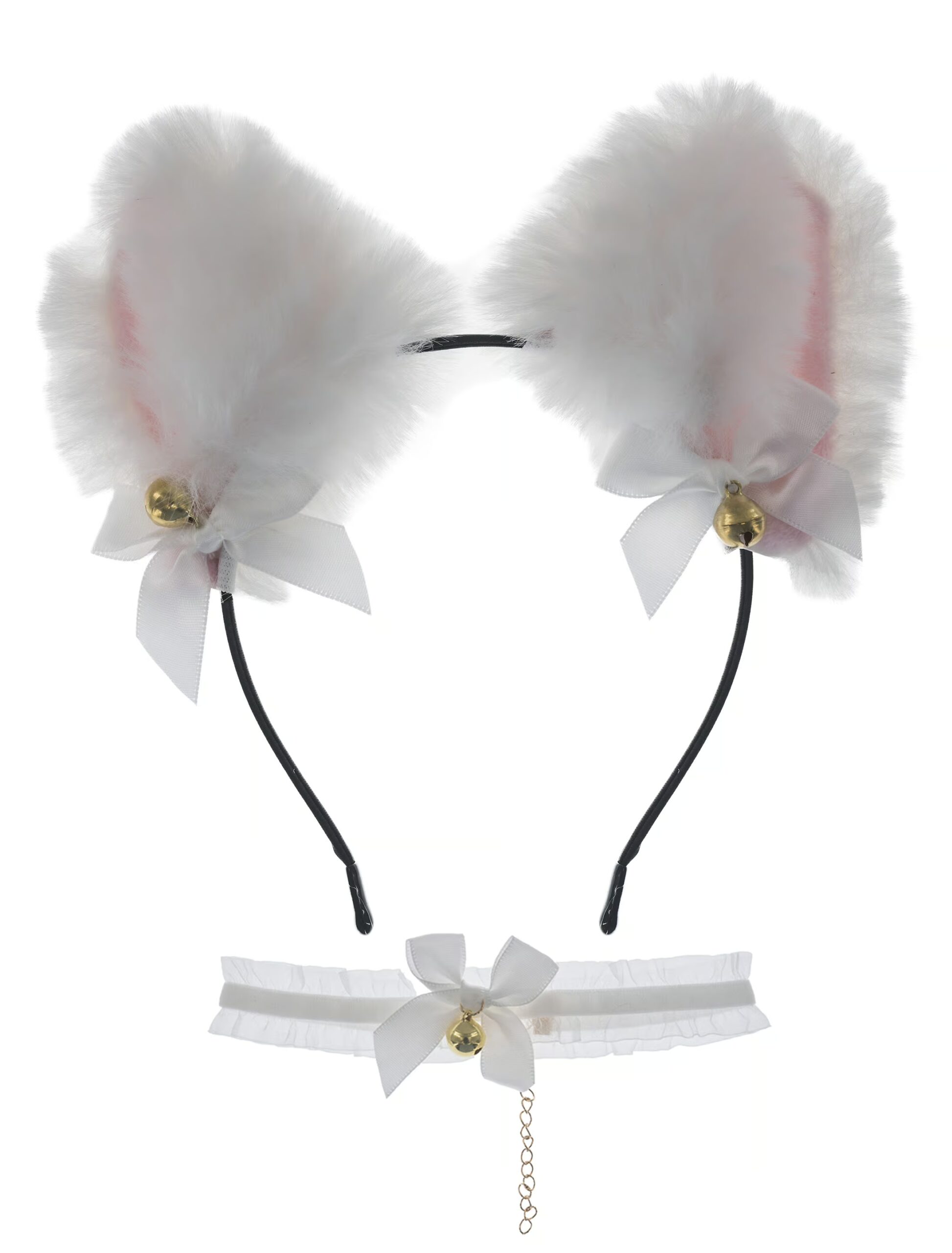 Kostümzubehör Set Katze mit Haarband und Choker weiß