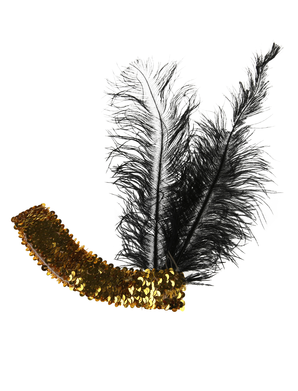 Zeig den anderen Gästen auf der nächsten Mottoparty, warum die Goldenen 20er ihren Namen tragen und tauche dort mit dem Pailletten Stirnband mit Federn in Gold auf. Egal, ob zu Swing oder Jazz, egal, ob alleine oder mit einem Deiner Bewunderer, das Pailletten Stirnband mit Federn in Gold macht alles mit. Lass Dich in die glorreiche Zeit zurückversetzen und werde Teil einer glanzvollen Reise in die Vergangenheit. Das Stirnband lässt sich durch einen einfachen Gummizug jeder Größe anpassen.