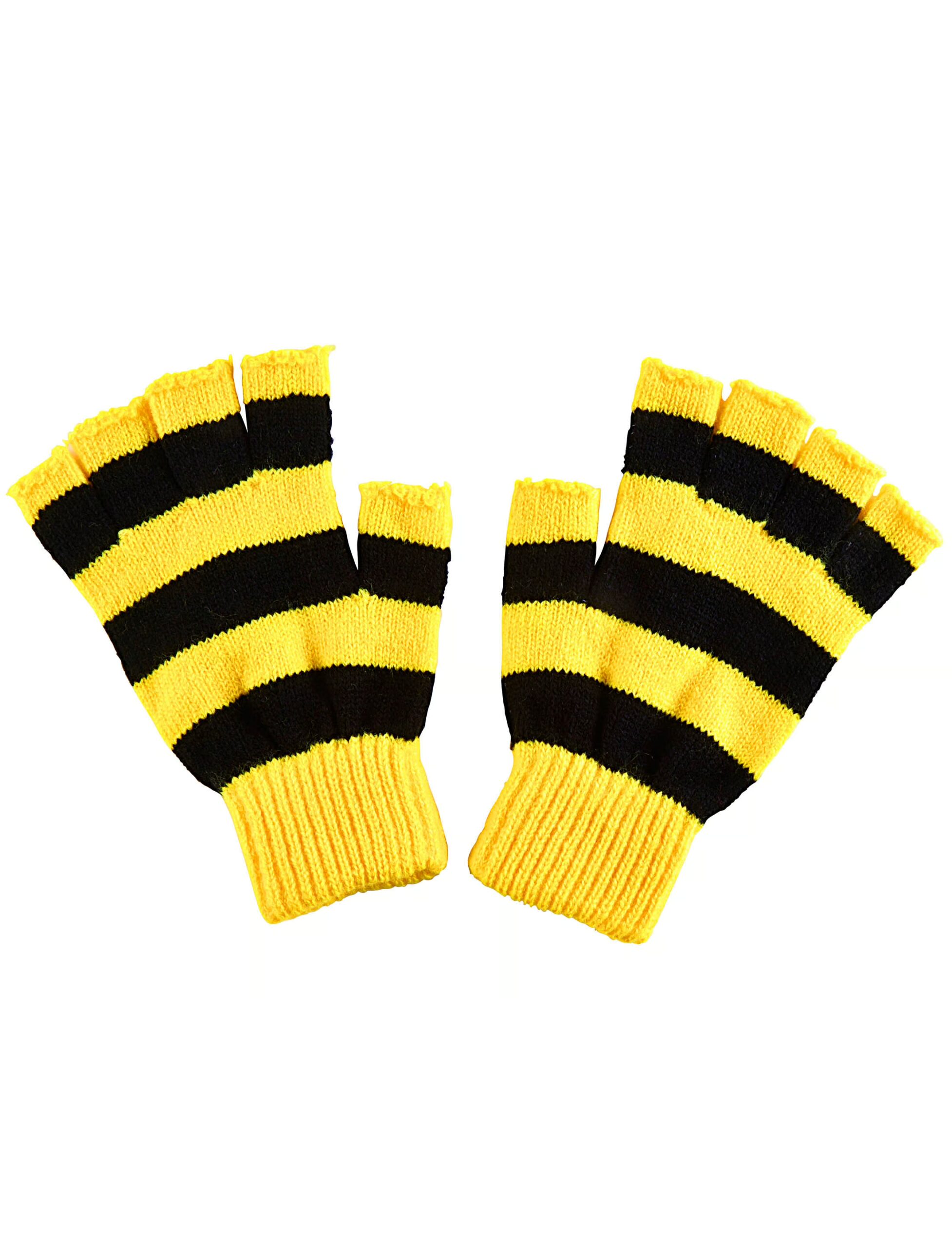 Kennst Du das Problem? Die meisten Handschuhe sehen langweilig aus und sind total unpraktisch! Nicht aber diese hier: Die gelb-schwarz geringelten Handschuhe sehen nicht nur toll aus, sondern sind dadurch, dass sie fingerlos sind, auch super praktisch! Perfekt zu allen Bienen Kostümen, aber auch ein toller Begleiter im Alltag!
