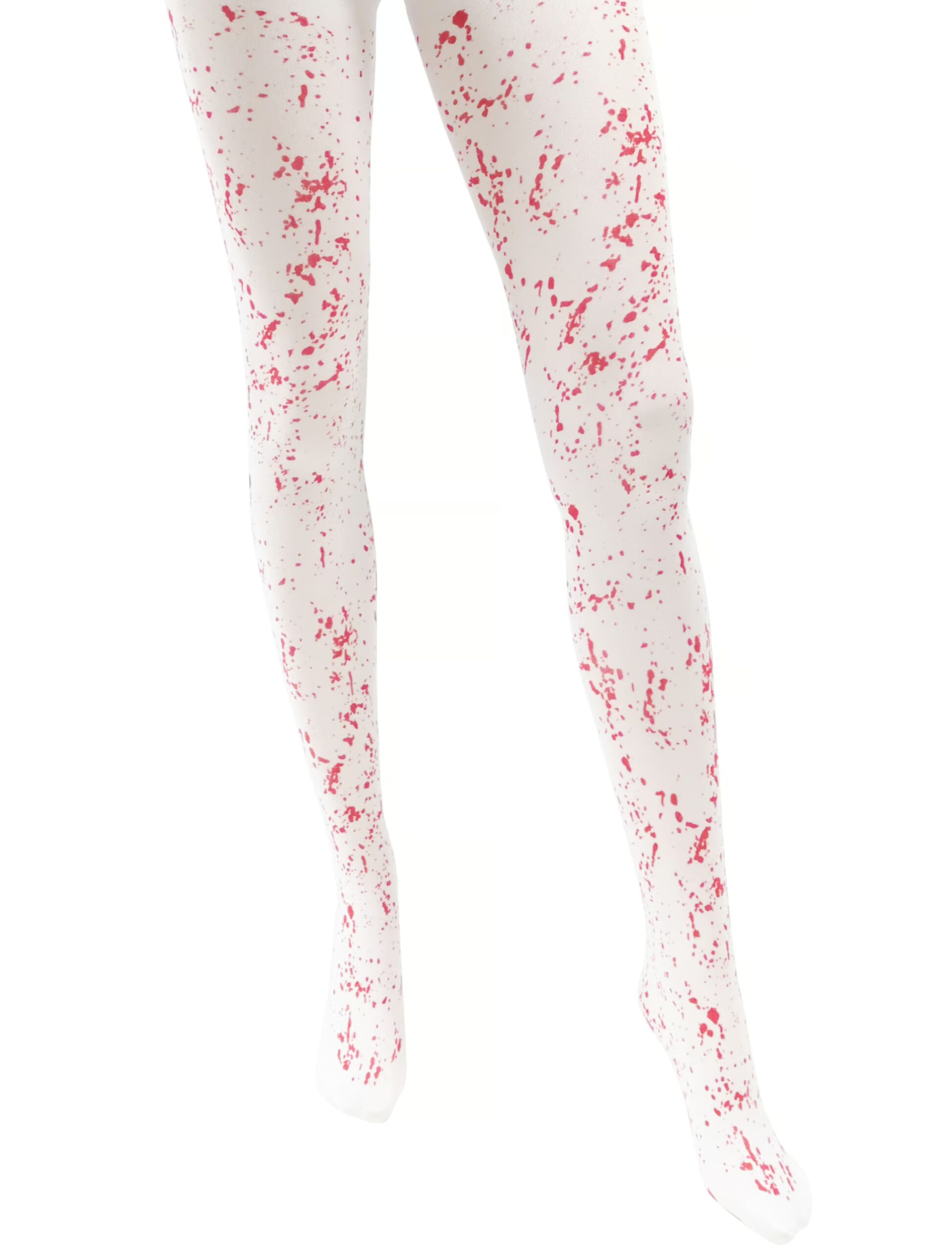 Perfekt für die blutigen Halloween Kostüme aus unserem Shop ist diese weiße, blutbefleckte, Strumpfhose für Damen in Einheitsgröße aus einem angenehm zu tragenden Polyester-Elasthan-Gemisch. Sie ist von oben bis unten mit täuschend echt aussehenden Blutflecken überzogen und bietet einen schaurig schönen Anblick. Trage sie als Zombie Dame, Serienmörderin, Metzgerin, Vampir-Lady, Krankenschwester oder Horror-Ärztin auf der nächsten Halloween- oder Horror-Party und lass die anderen sich gruseln!