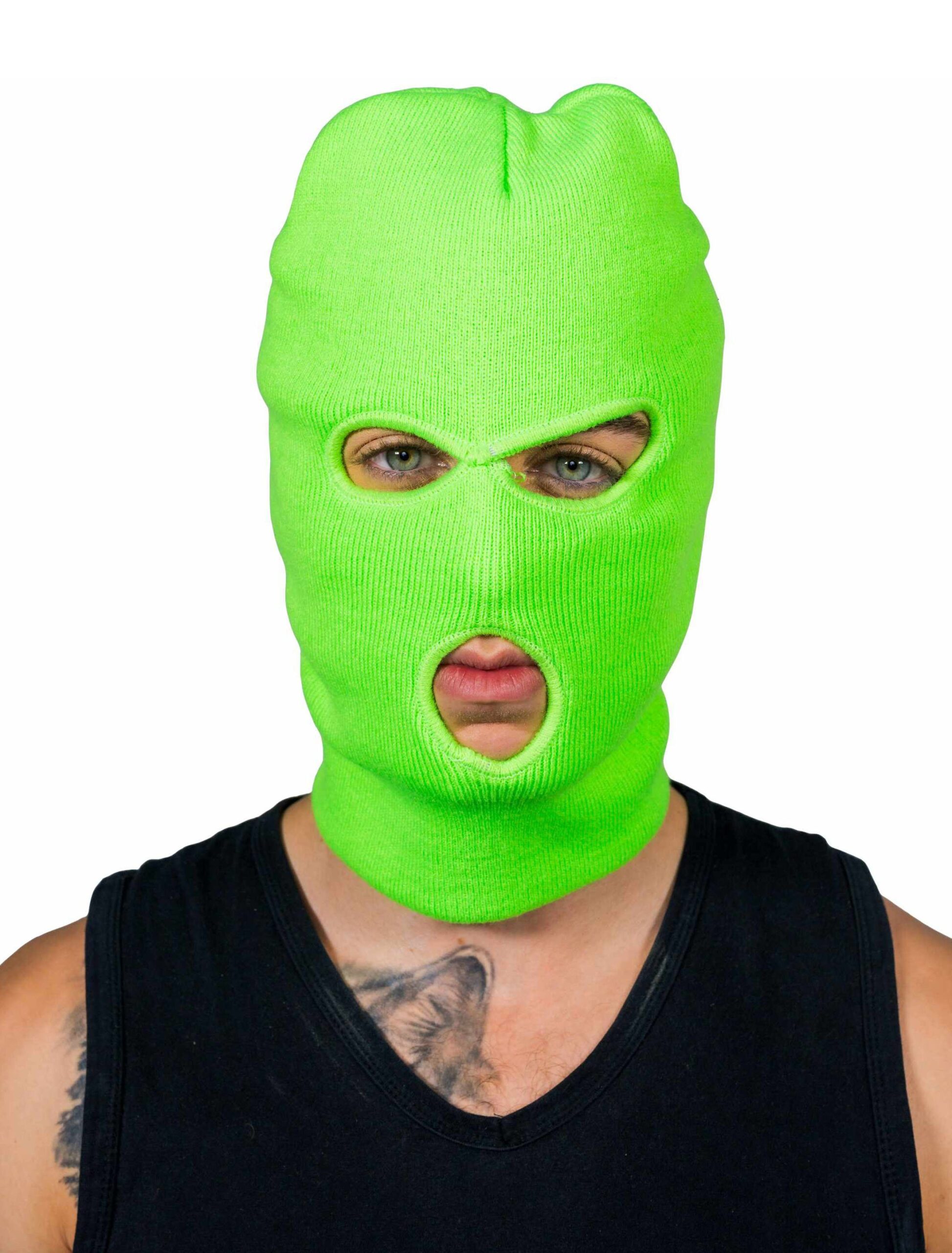 Du willst Dich als Ganove verkleiden und dabei diskret bleiben? Dieser Wunsch wird Dir hier selbstverständlich erfüllt. Diese gestrickte Sturmhaube in der Farbe Neongrün lässt den Träger unerkannt bleiben. Du kannst auf der nächsten Kostümparty also Deine wahre Identität verbergen und Dein Banditenkostüm somit perfektionieren – wir sagen es nicht weiter! Mit dieser neongrünen, gestrickten 3-Loch Sturmhaube bist Du DER mysteriöse Gast und ziehst alle Blicke auf Dich! Bestellen kannst Du diese Sturmhaube in einer Einheitsgröße.
