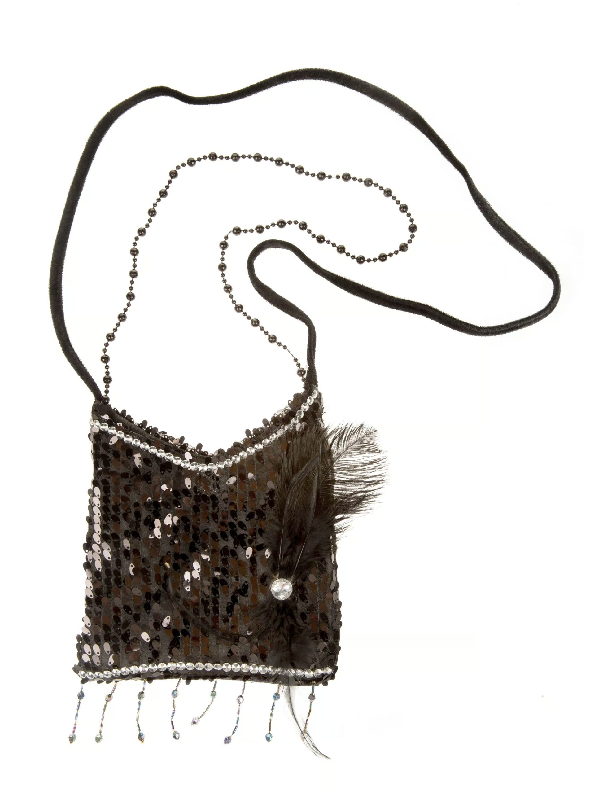 Diese extravagante Handtasche ist eine besonders praktische Ergänzung für Dein Party-Outfit! Die schwarze Klettverschluss-Tasche ist aufwändig mit funkelnden Pailletten sowie einer echten Feder verziert und mit einem dezenten Tragegurt ausgestattet. Damit hast Du endlich einen Platz für Hausschlüssel, Kleingeld und Co! Die Tasche hat ein Hauptfach, welches mit einem Klettverschluss zu verschließen ist.