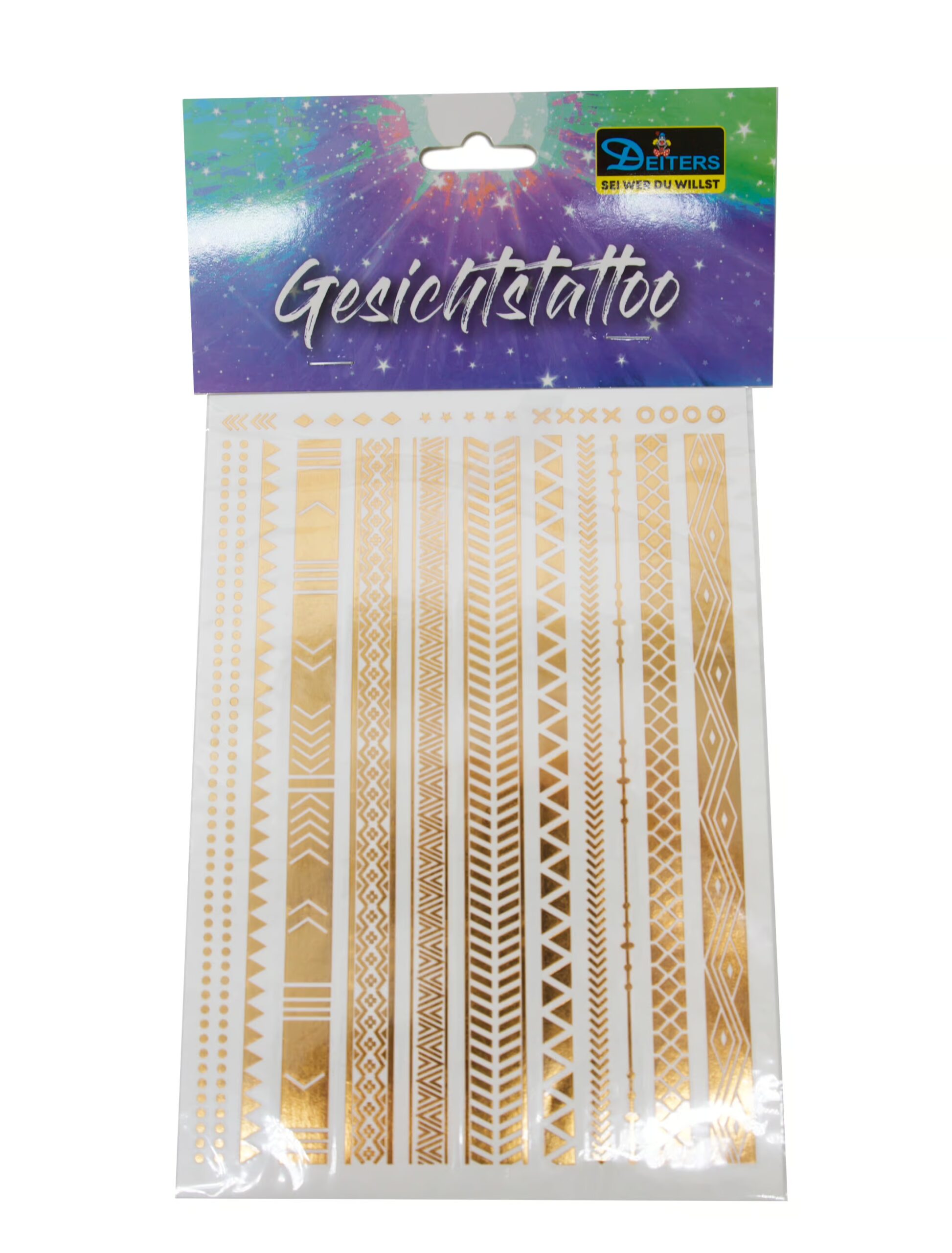 Unser Metallic Tattoo Set Boho ist ideal für alle, die den freien Spirit des Boho-Stils auf ihrer Haut tragen möchten! Enthalten sind mehrere detailreiche Tattoo-Bänder mit typischen Mustern und Ornamenten, die sich perfekt an Armen, Handgelenken oder Beinen platzieren lassen. Ergänzt wird das Set durch filigrane Motive wie kleine Kreise, Kreuze, Sterne, Rauten und Pfeile – alles im schimmernden Metallic-Look. Ob für Festivals, Sommerpartys oder kreative Alltagslooks – mit diesem Set ziehst du garantiert alle Blicke auf dich!