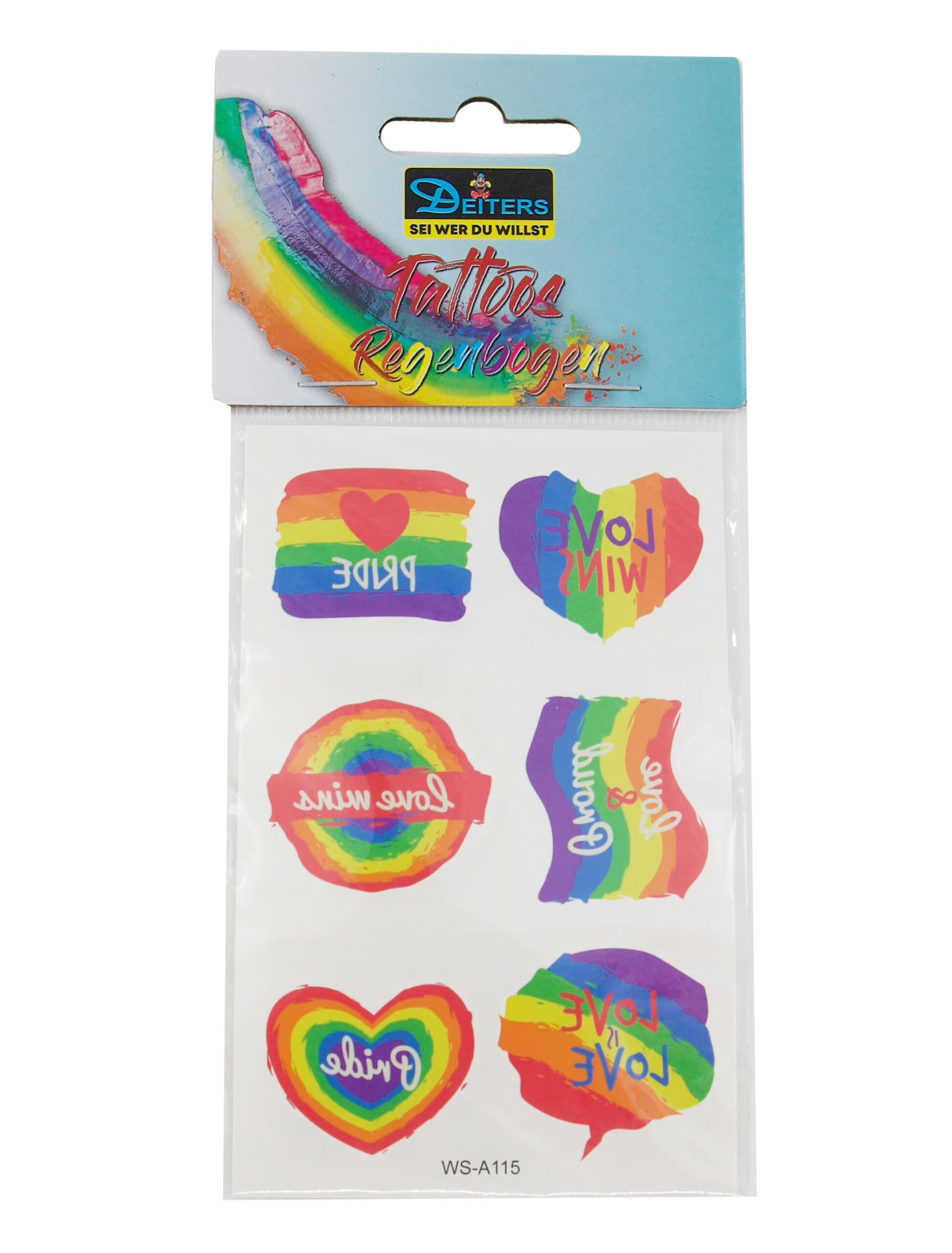 Mit unseren sechs Rainbow Tattoos wird dein Look zum absoluten Farbfestival! Egal ob du auf Herzchen, Flaggen, coole Schriftzüge oder einfach nur auf den vollen Regenbogen-Kick stehst, hier findest du alles, was dein Tattoo-Herz begehrt. Die verschiedenen Motive bringen nicht nur Farbe in dein Leben, sondern auch die nötige Portion Spaß und Style. Für jeden Tag ein neues Tattoo – Du entscheidest, wie viele Regenbögen du auf einmal rocken möchtest! Diese Tattoos sind der perfekte Weg, deinen inneren Regenbogen in die Welt hinauszutragen!