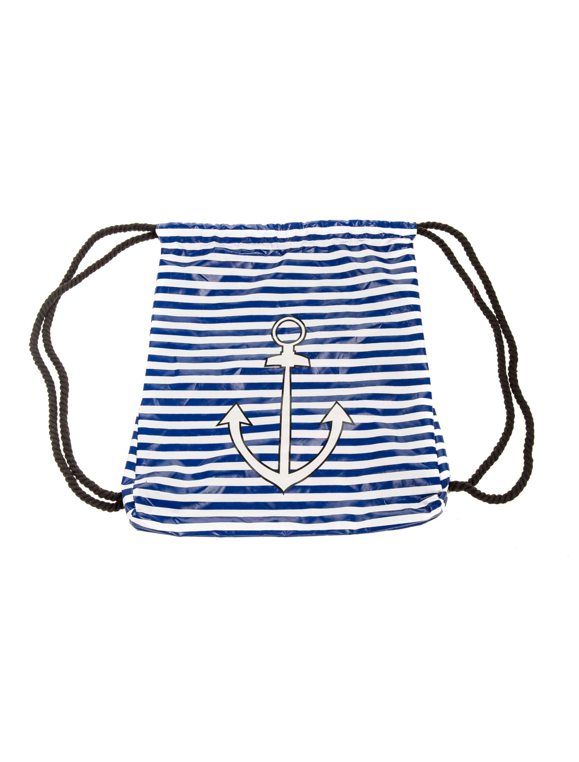 Dieser wunderbare Marine-Turnbeutel ist eine besonders praktische Ergänzung für Dein Kostüm! Der geräumige Beutel ist aus robustem, glänzendem Polyester-Stoff gefertigt und mit blau-weißen Streifen sowie einem großen Anker-Motiv bedruckt. Genau das richtige Accessoire für Dein Matrosen- oder Seefahrer-Outfit! Dieser praktische Turnbeutel bietet Dir Platz für alles, was Du beim Straßenkarneval oder auf einer anständigen Party brauchst! Die perfekte Matrosen-Tasche für Kamelle, Proviant, Regenjacke und Co.!