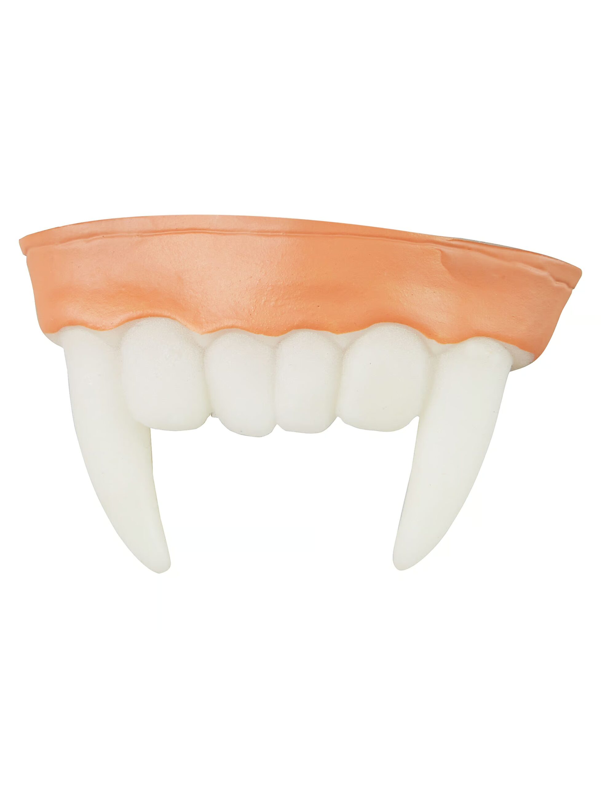 Das wichtigste Werkzeug und Erkennungsmerkmal eines jeden Vampirs? Natürlich seine Zähne! Wie soll er denn sonst bitte das Blut aus den Adern seiner Opfer saugen? Dieses Gebiss mit langen und spitzen Vampirzähnen leuchtet sogar im Dunkeln. Es wird einfach über die echten Zähne gezogen und verwandelt Dich in Sekundenschnelle in eine echte Bestie. Die ideale Ergänzung für Dein Halloween-Outfit!