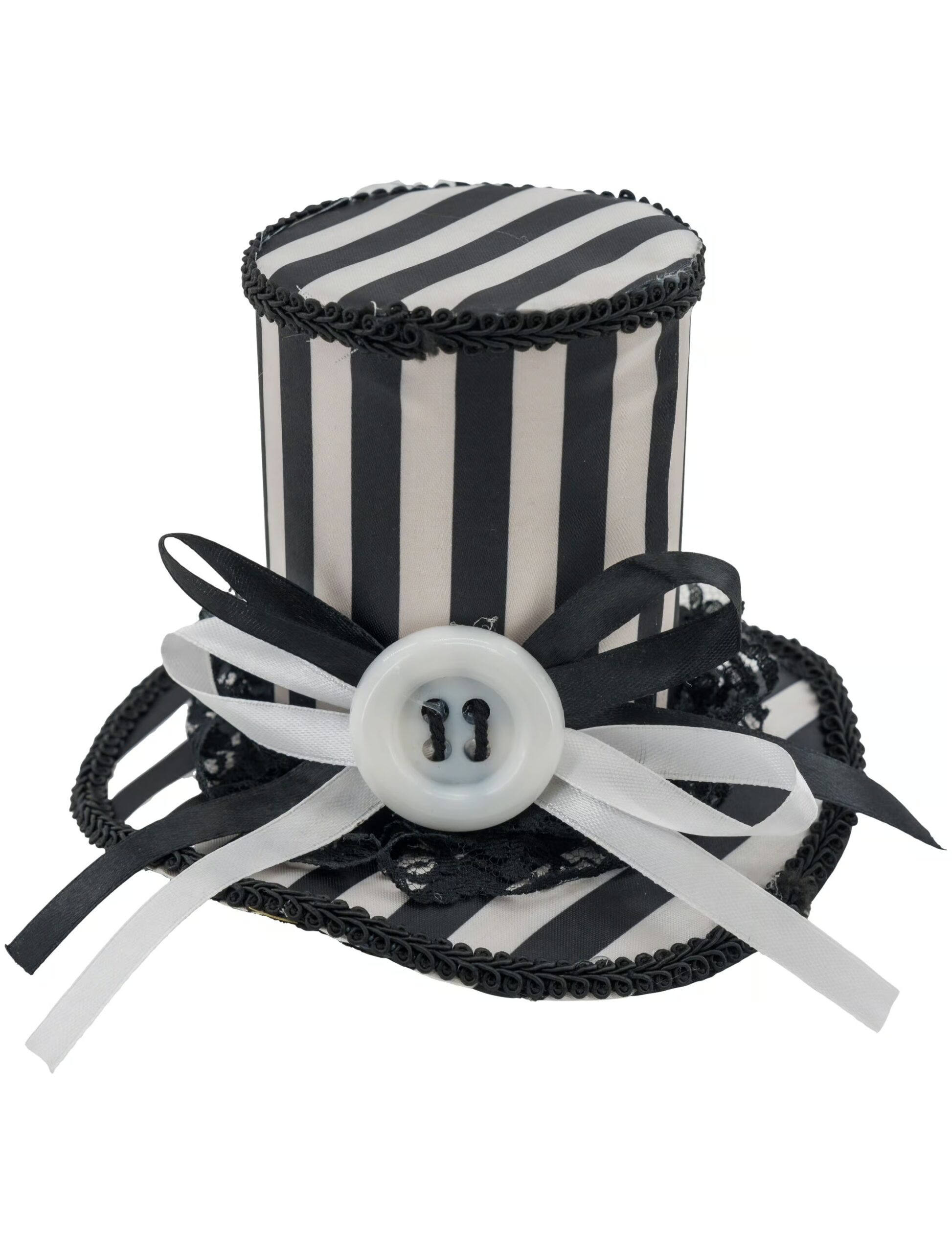 Kostümzubehör Zylinder Mini gestreift mit Knopf schwarz/weiß