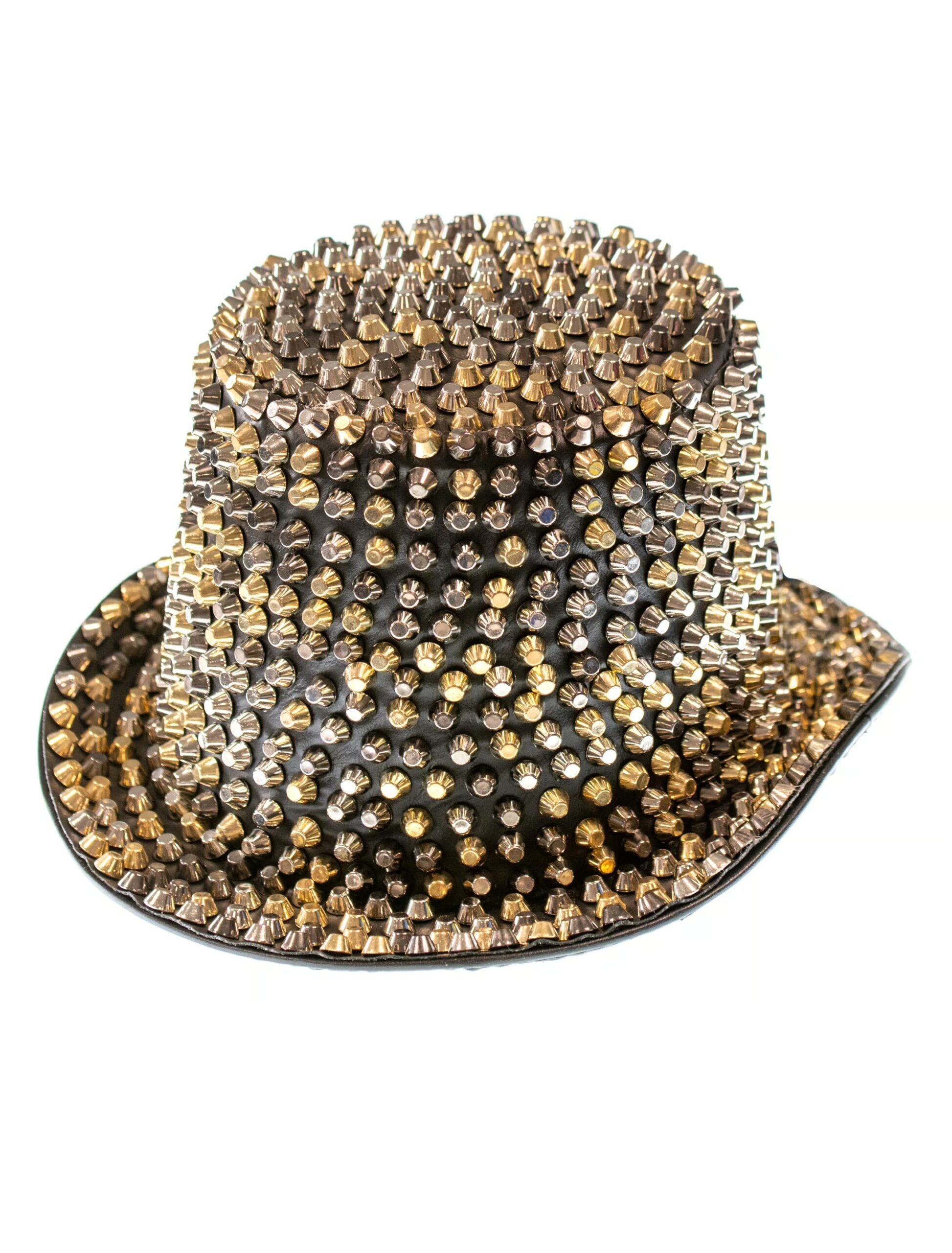 Du bist zu einer Steampunkparty eingeladen und suchst noch den letzten Schliff für Deine Verkleidung? Gar kein Problem! Dieser Zylinder mit goldenen und silbernen Nieten ist ein echter Hingucker. Er hat eine Höhe von ca. 17 cm und entspricht einem Kopfumfang von ca. 57 cm. Der Zylinder besteht aus 100% Polyester, die Nieten sind aus Metall. Eine ideale Kopfbedeckung zu Deinem Steampunk Kostüm an Halloween oder Karneval.