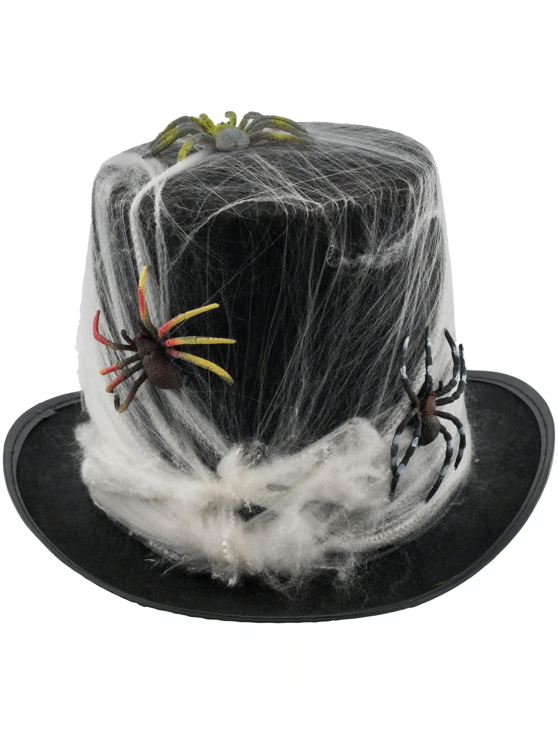 Kostümzubehör Zylinder mit Spinnennetzen schwarz 59