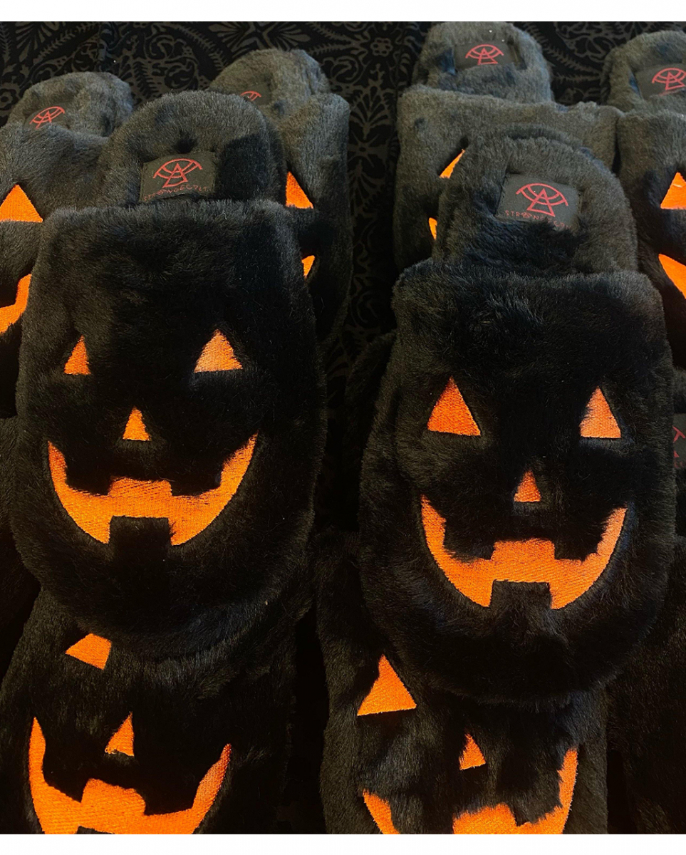Schwarze Kreepy Kozy Jack Plüsch Hausschuhe für Halloween Witzige Kürbis Slipper als gemütliche Halloween Pantoletten Die schwarzen Kreepy Kozy Jack Plüsch Hausschuhe sind ein tolles Accessoire für die Gruselnacht. Schlüpfe in die flauschigen Kürbis Hausschuhe und genieße die Nacht der lebenden Toten mit der passenden Fußbekleidung. Die Kreepy Kozy Jack Plüsch Hausschuhe Schwarz machen deine Füße zum schaurigen Hingucker. Die Pantoletten sind schwarz und zeigen orangefarbene Kürbiskopf Fratzen, die breit grinsen. Wahrscheinlich freuen sie sich genauso auf die Gruselnacht wie du! Lieferumfang: 1 x Schwarze Kreepy Kozy Jack Plüsch Hausschuhe Inhalt: 1 Paar Farbe: Schwarz, Orange Größe: 37,5 (US 7), 39 (US 8), 40-41 (US 9-10), 41-42 (US 11-12) Material: 100% Polyester, Gummisohle Super flauschige Hausschlappen Easy zum Reinschlüpfen Absolut angenehm zu tragen Geniale Geschenkidee für Halloween Fans Der Artikel ist ein Kostümzubehör für Erwachsene und kein Spielzeug. Nicht für Kinder unter 3 Jahren geeignet. Kann Kleinteile enthalten, die verschluckt werden können – Erstickungsgefahr. Von Feuer und offenen Flammen fernhalten.
