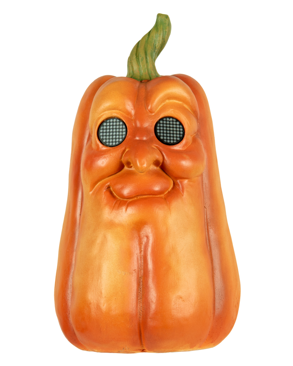 Jack O’Lantern mit bewegenden LED Augen Grimasse 3 Großer Pumpkin mit leuchtenden Augen als Halloween Dekoration Stell dir vor, in der düsteren Ecke deines Partyraums sitzt der Jack O’Lantern, dessen LED-Augen plötzlich lebendig werden und die Stimmung mit jedem Blick intensivieren. Dieser nicht von dieser Welt scheinende Kürbis bringt ein unheimliches Flair zu deinem Halloween-Fest, das Gäste sowohl erschreckt als auch entzückt. Der Kürbis mit bewegenden LED Augen Grimasse 3 misst etwa 41 x 21 cm und ist aus hochwertigem Polyresin gefertigt. Dieser robuste Kunststein-Kürbis ist ideal für den Innenbereich geeignet und kann Jahr für Jahr wieder verwendet werden. Für die Beleuchtung benötigt er drei AA-Batterien (nicht im Lieferumfang enthalten), um die LED-Augen zum Leben zu erwecken. Lieferumfang: 1 x Jack O’Lantern mit bewegenden LED Augen Grimasse 3 Farbe: Orange, Grün Größe: ca. 41 x 21 cm Material: Polyresin (Kunststein) Batterien: 3x 1.5V AA (nicht enthalten) Lustiger Halloween Pumpkin mit Gesicht LED Augen zeigen verschiedene Ausdrücke Aus hochwertigem Kunststein gefertigt Langlebige Halloween Kürbis Dekoration